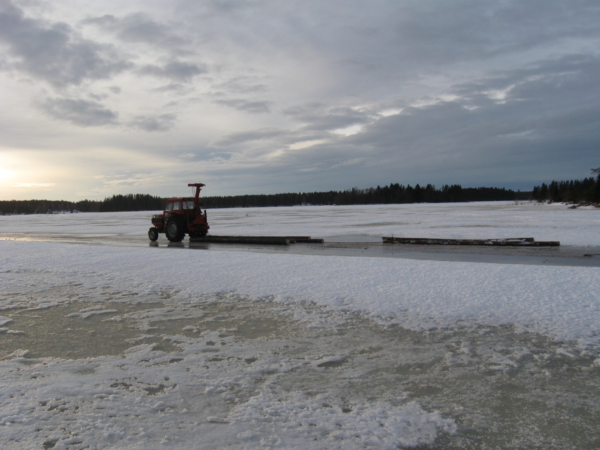 Lunning nästan en km över isen. Bommen lämnad hemma så ekipaget blir kort.