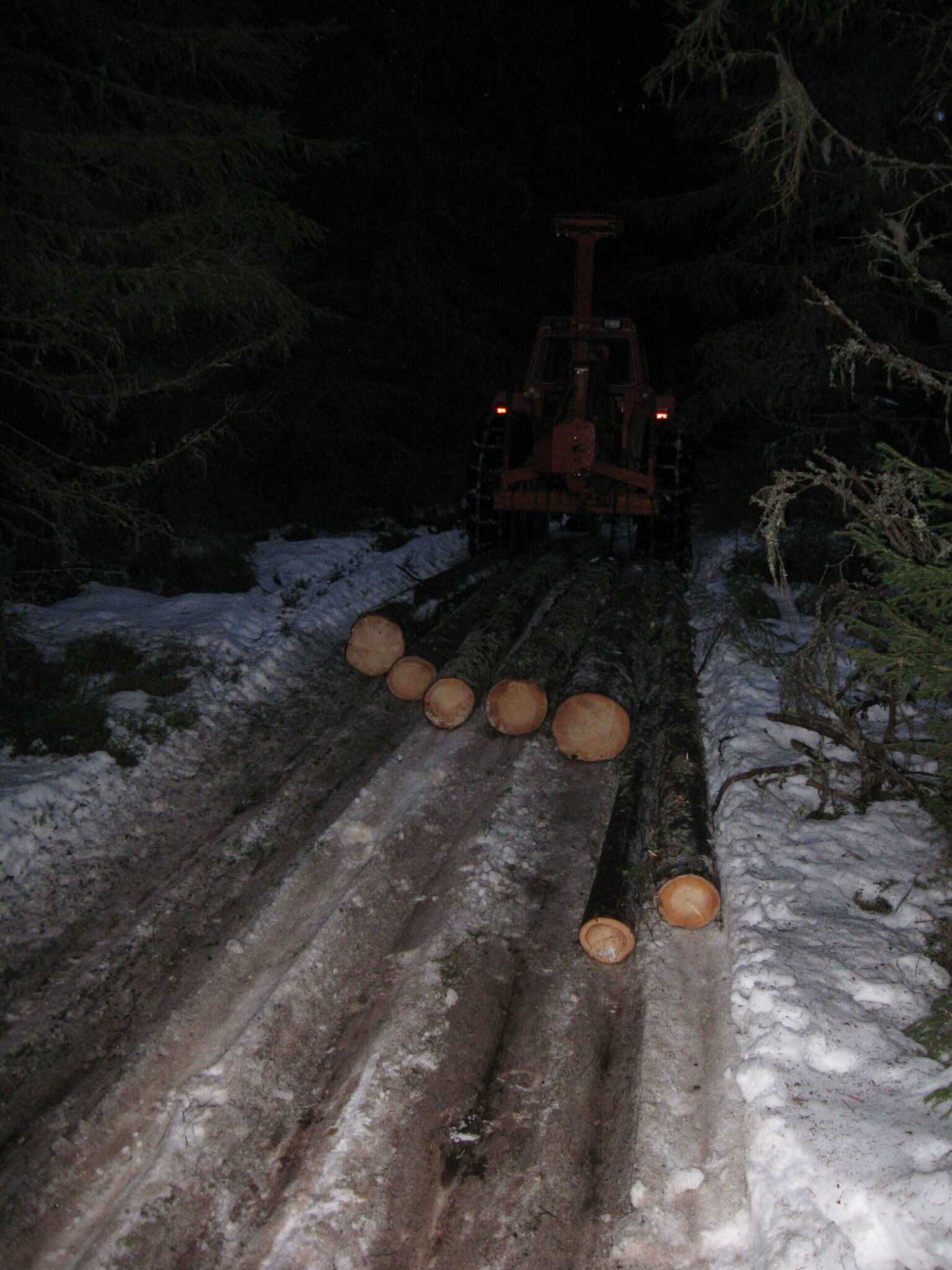 Det är väldigt bra att ni inte har frontlastare på traktorn. Bara storskogsägare med stora fyrhjulsdrivna traktorer och råd att hugga upp breda körstråk kan köra i skogen med frontlastaren monterad. Mindre traktorer i synnerhet tvåhjulsdrivna blir för tunga på nosen med frontlastare monterad och dessutom krävs det alldeles orimligt breda körståk med det där eländet som sticker ut minst en och en halv meter frampå traktorn.