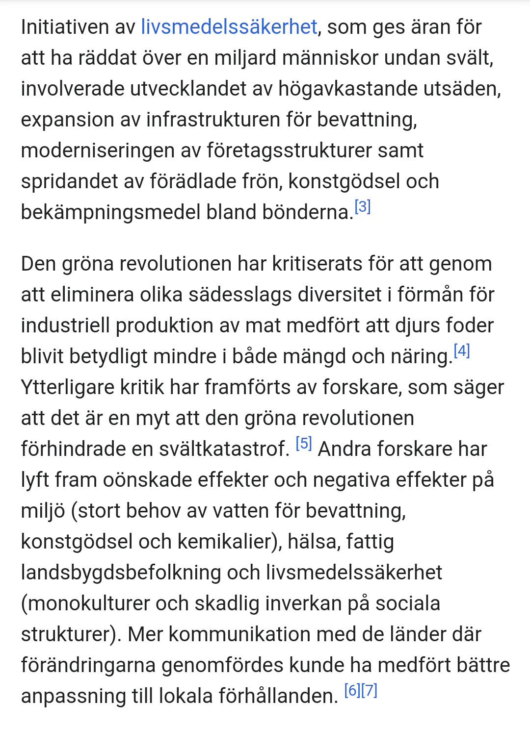 Här är vad som skrivs om den gröna revolutionen som Norman Borlaug var starkt drivande för på Wikipedia