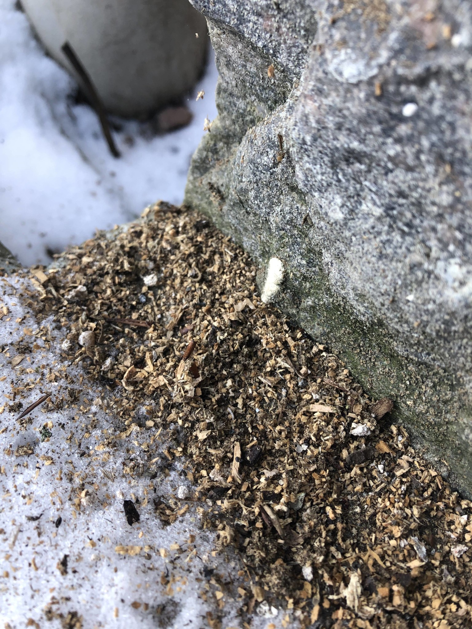 Blev lite fundersam när jag hittade detta under offerbrädan. Brädan är ganska murken då det verkar ha stänkt vatten från lövsilen ett bra tag, och någon verkar ha kalasat eller boat in sig.