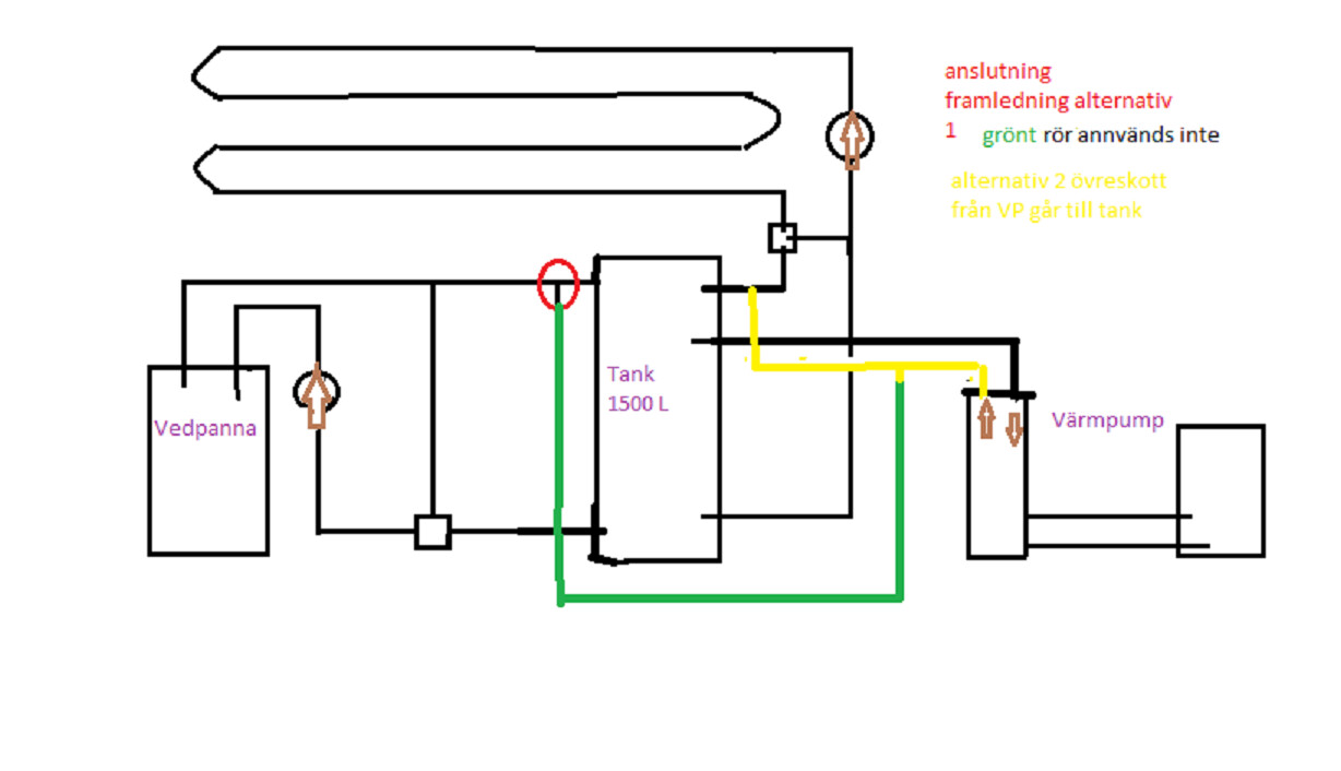 alternativ 2 så går stigare från VP till shunt överskott tillbaka i tank