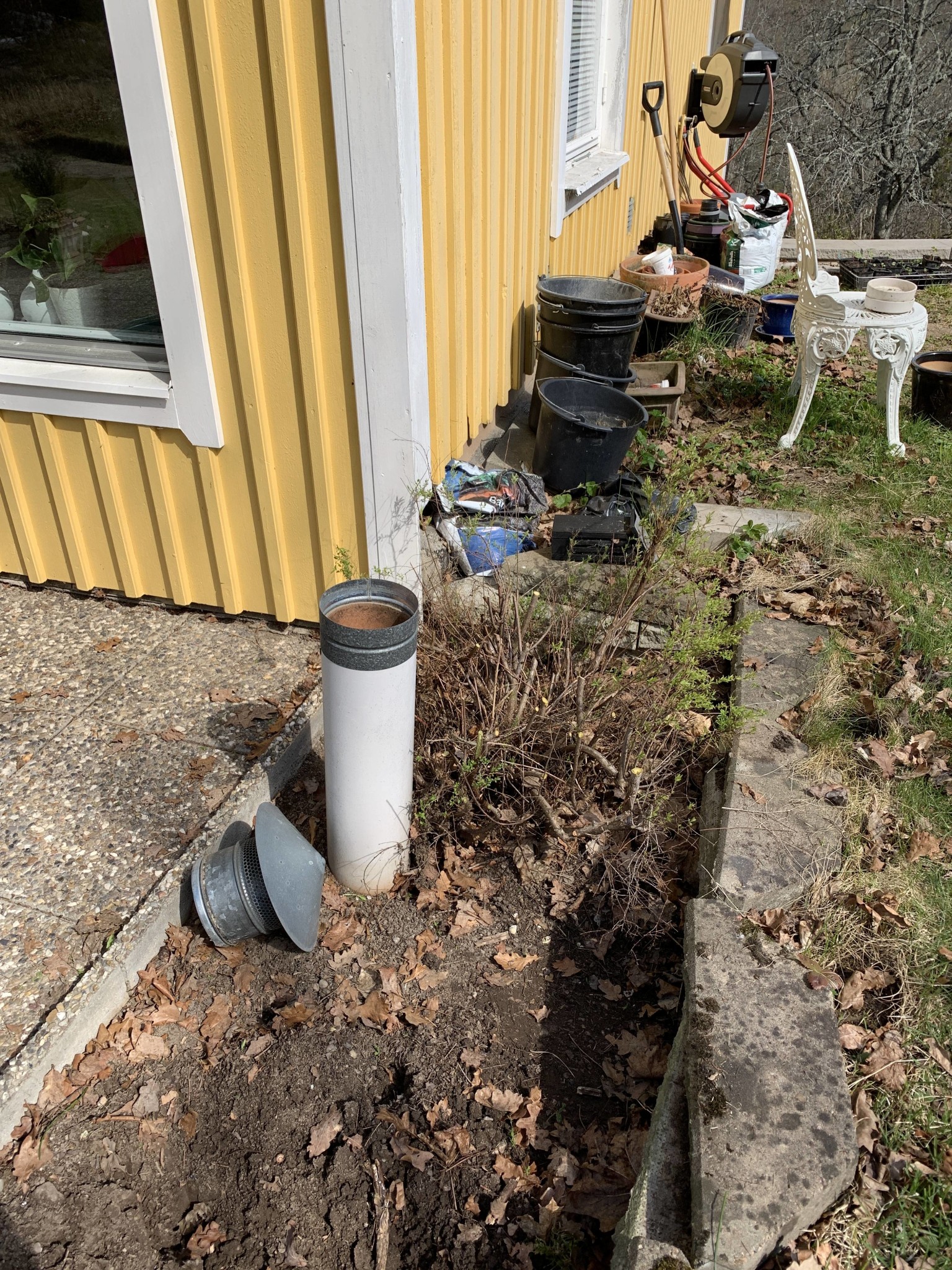 Ventilationen består av dubbeldörren på ena kortsidan som är lagom otäta och det här 160mm röret som kommer upp i en rabatt på baksidan. Minst sagt olägligt placerat med tanke på att det ser förj@vligt ut. Se bild.
