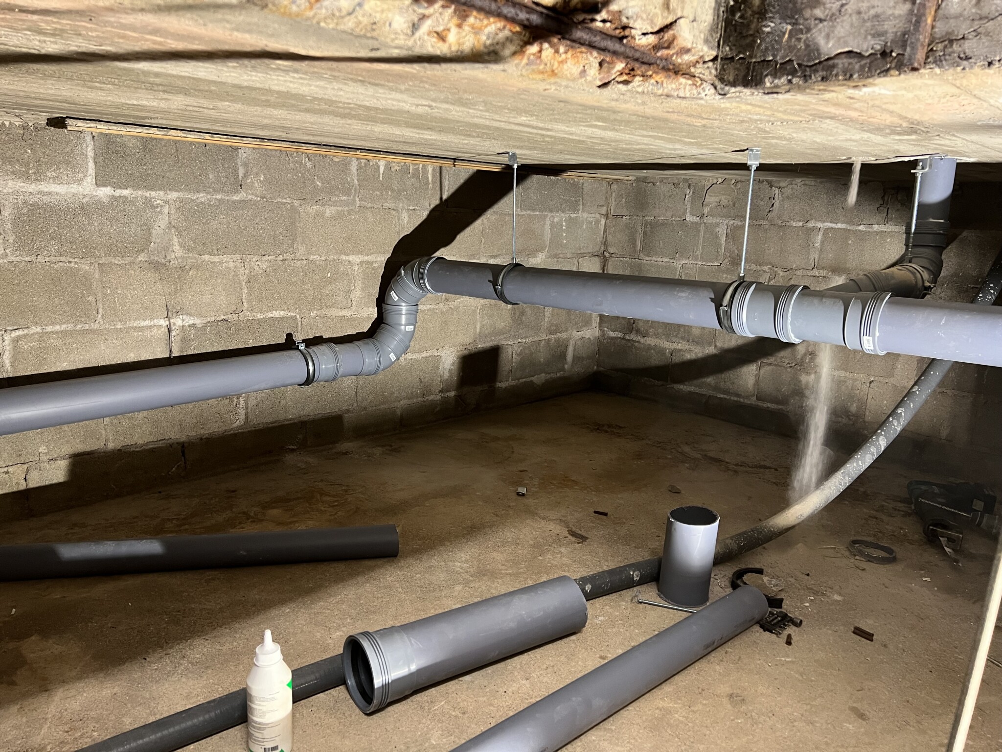 Jag lät håltagaren ta ett extra hål för att ventilera så elektrikern satte ett ventrör och en liten kanalfläkt från fasad ner i smörjgropen som skickar ut luft då jag fick det som tips av en kille för att hålla tort där nere. Tilluft saknas om inte det smiter ner något från ovan där det är uppvärmt.