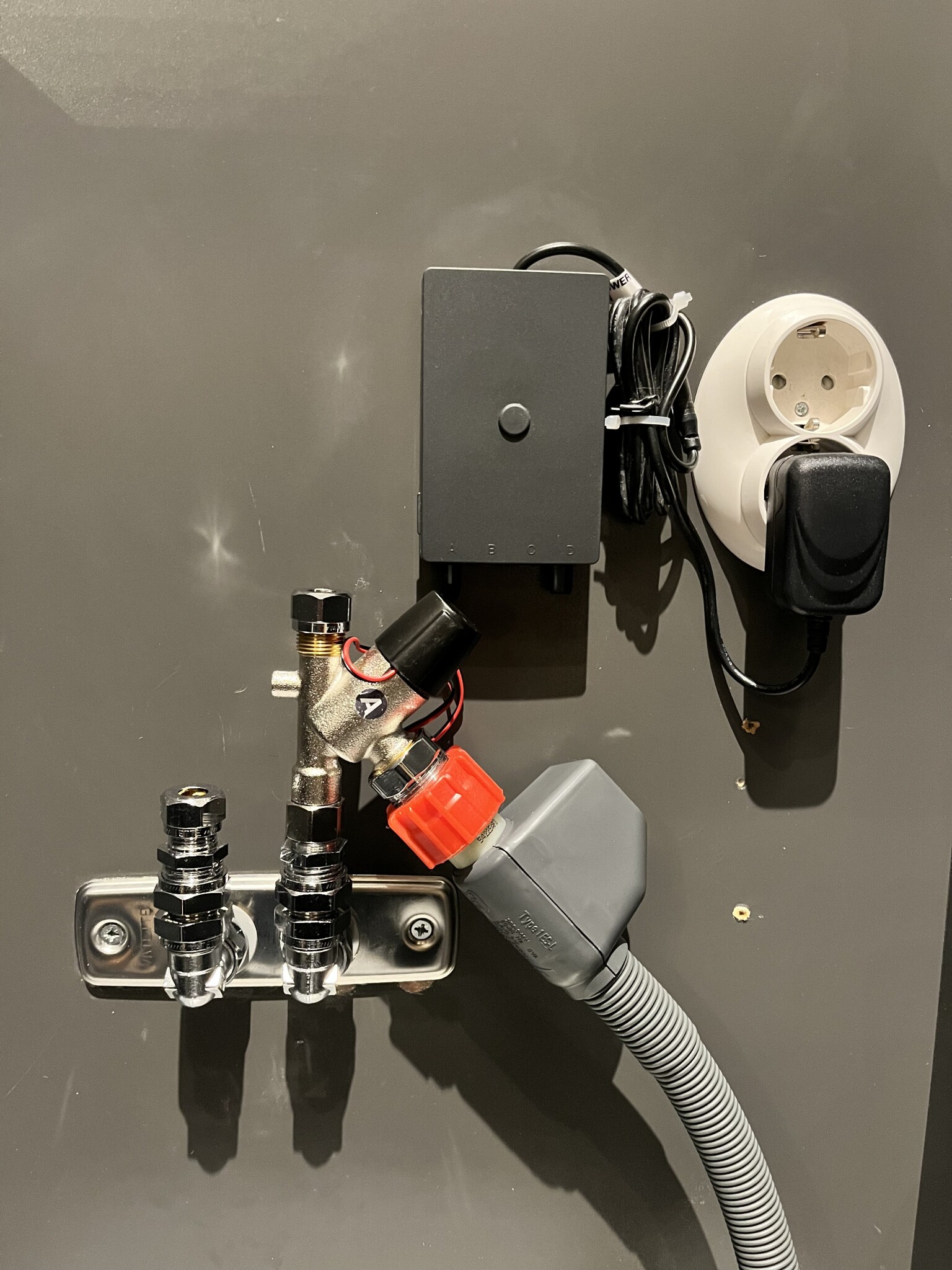 Men med en aquastop på diskmaskinen och så här kort sträcka mellan inlopp, avstängningen och anslutningen så är det väl ett stort frågetecken om det i själva verket fyller en större praktisk funktion.