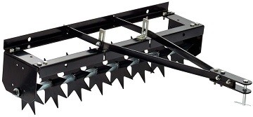 Kör med fördel med åkgräsklippare med uppsamlare efter, det är mkt smidigt jämfört med att kratta.