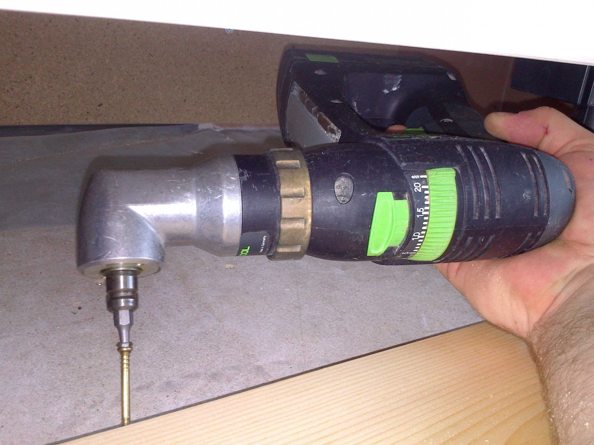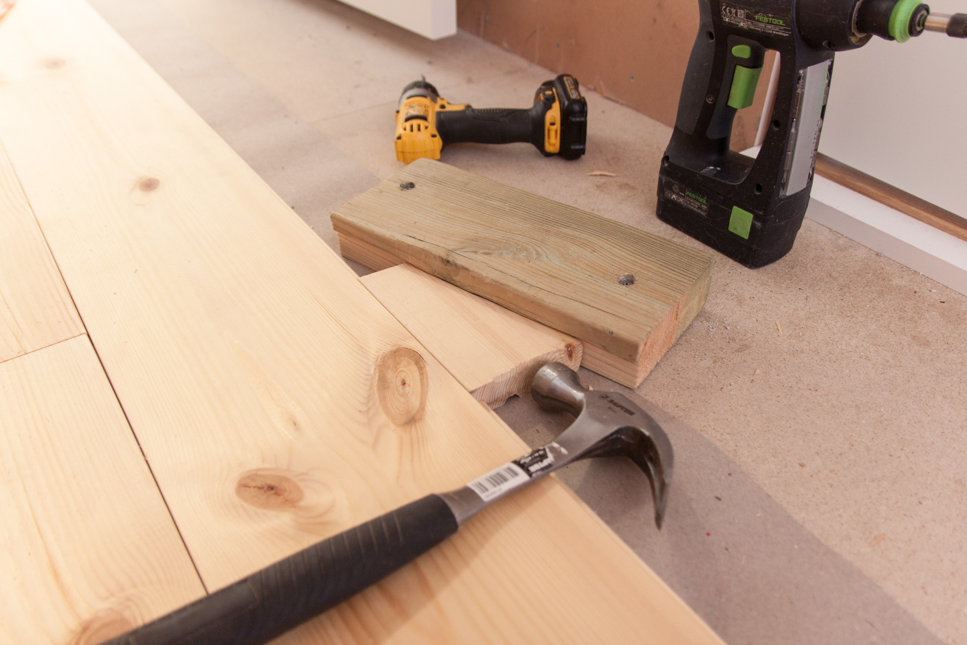 När man behöver tvinga in golvtiljan lite kom jag fram till att detta fungerar utmärkt och betydligt enklare än att skruva dit ett mothåll och bända med kofot.
