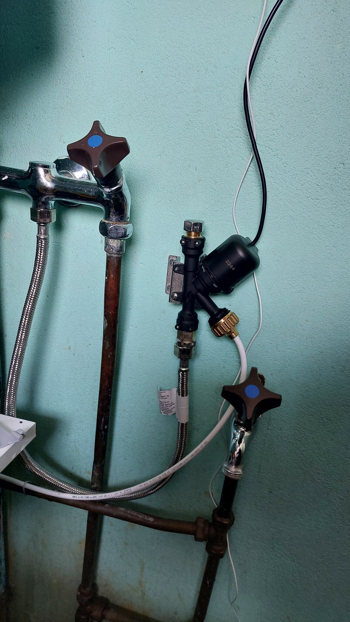 Lossa gamla vattenrör till tvättställsblandare samt inkoppling.