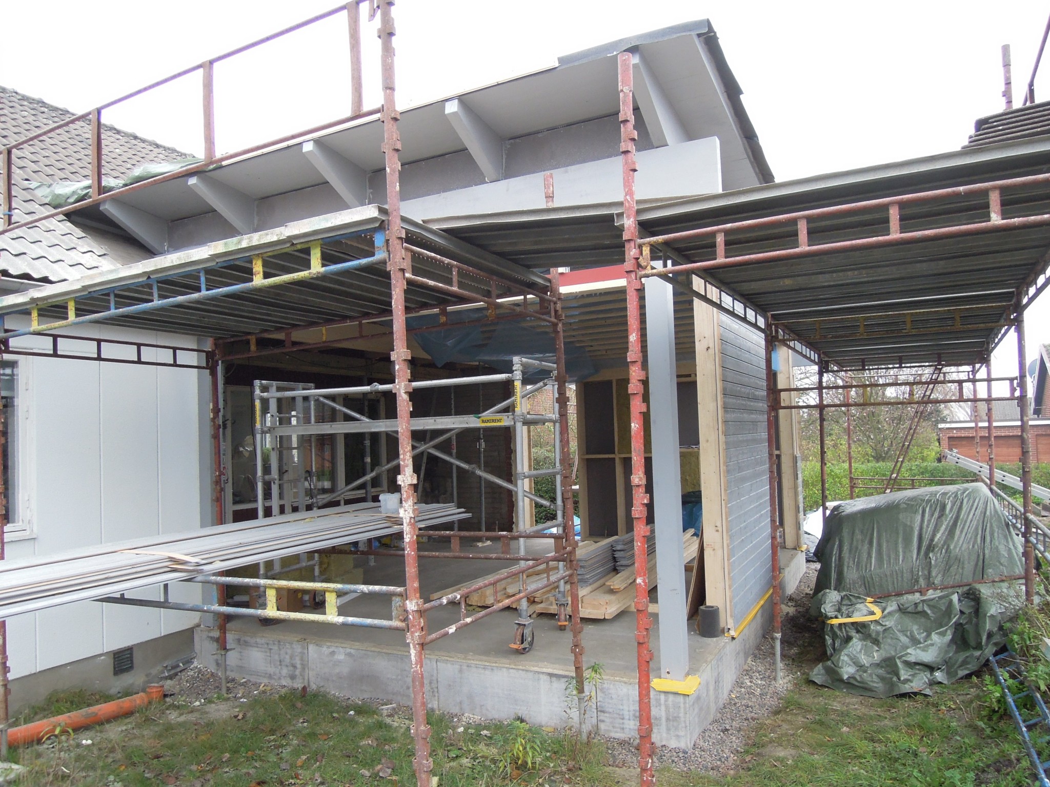 Halva sydfasaden på tillbyggnaden står i en sluttning så på en sträcka 2 meter, måste det byggas en grundmur.