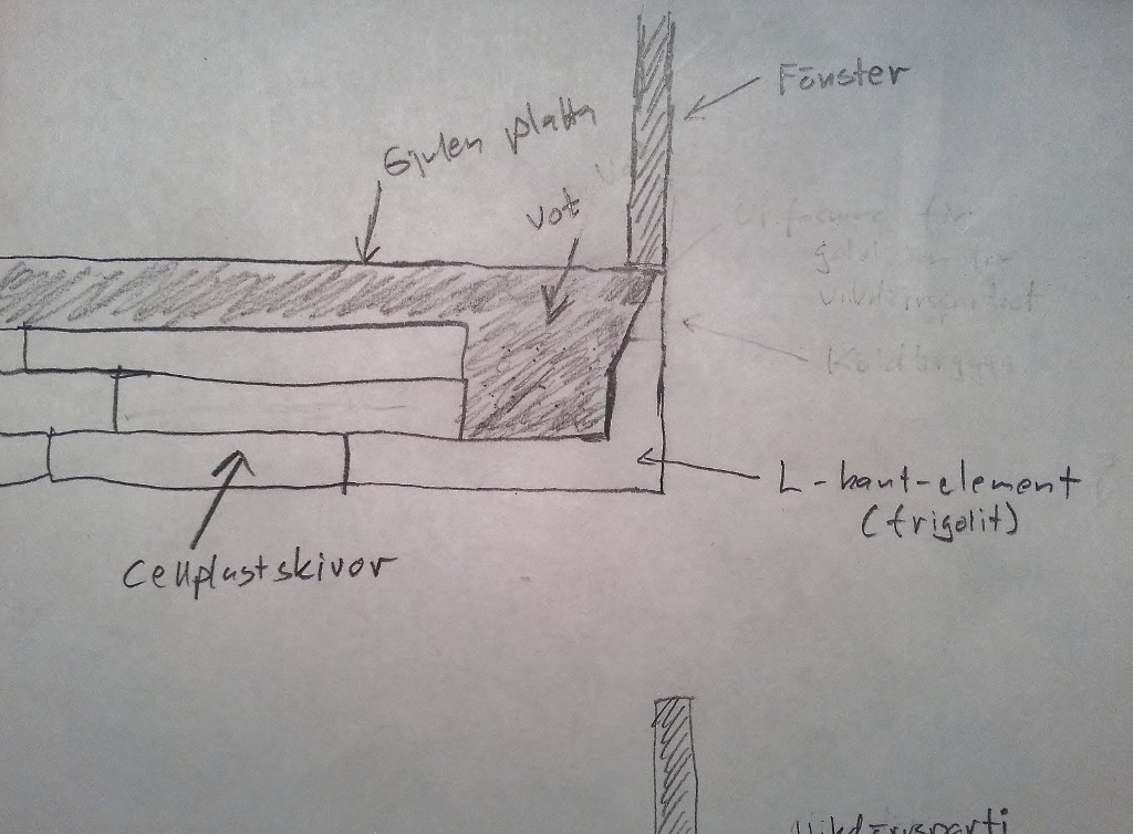 Tror vi lade en speciell hård 1 cm tjock isolering under fönsterpartierna.