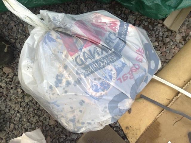 Längst ner bland allt bråte fanns det en soppåse med bland annat 5-10 tomburkar "Svensk Starköl 5.1%". Det kanske är därför verandan såg ut som den gjorde. Sned och allt