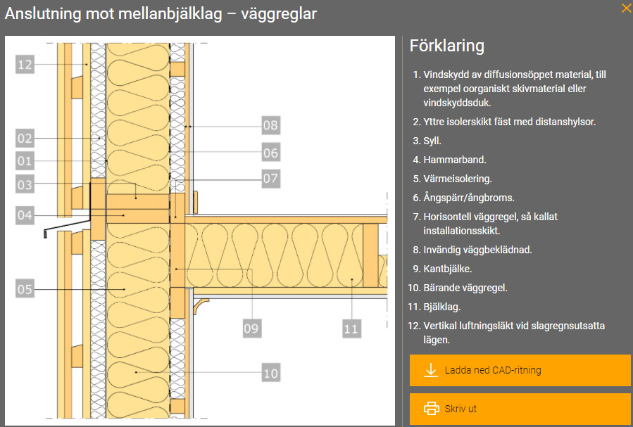 Jag tittar på TräGuiden angående anslutning mot mellanbjälklag för att göra konstruktionsritningar. Vad jag kan se framgår det inte i text vad skillnaden är men tittar man på bilderna så antar jag att den första är på det man kan kalla kortsidans vägg och den andra är på långsidan.
