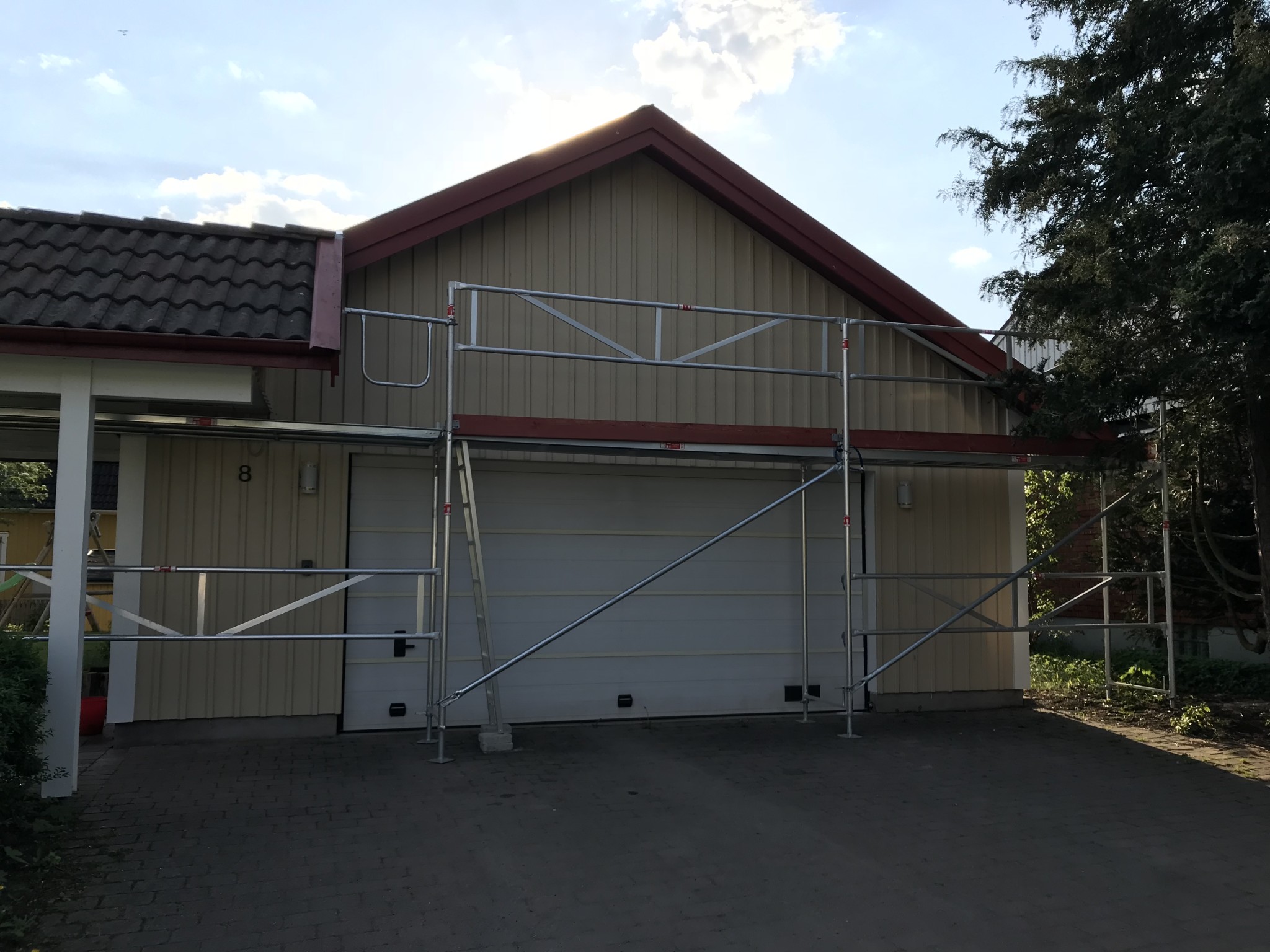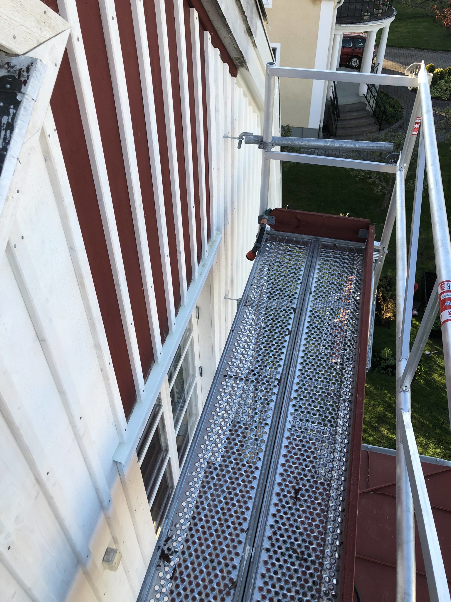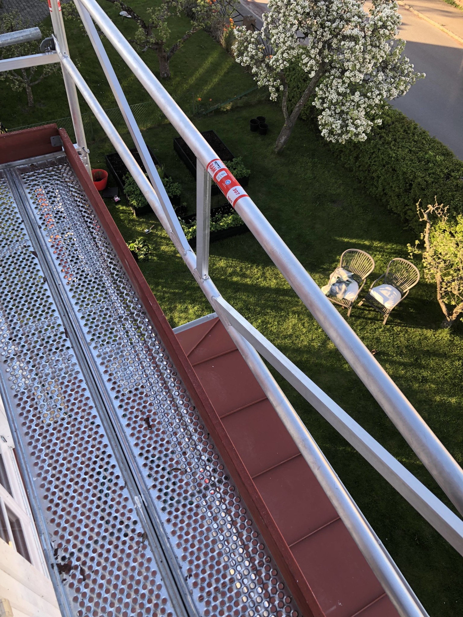 Hittade en enkel med för mig fullt fungerande ställning på Hornbach. Den ger arbetshöjd på 4,3 meter.
