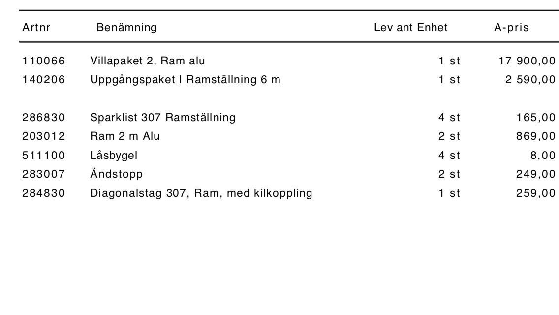 Kvalitet och handhavande på topp även om man bygger ställningen själv. Ca 29kkr ink moms. Hämtade själva på lagret i Karlskoga, frakt är annars ytterligare 2400kr.