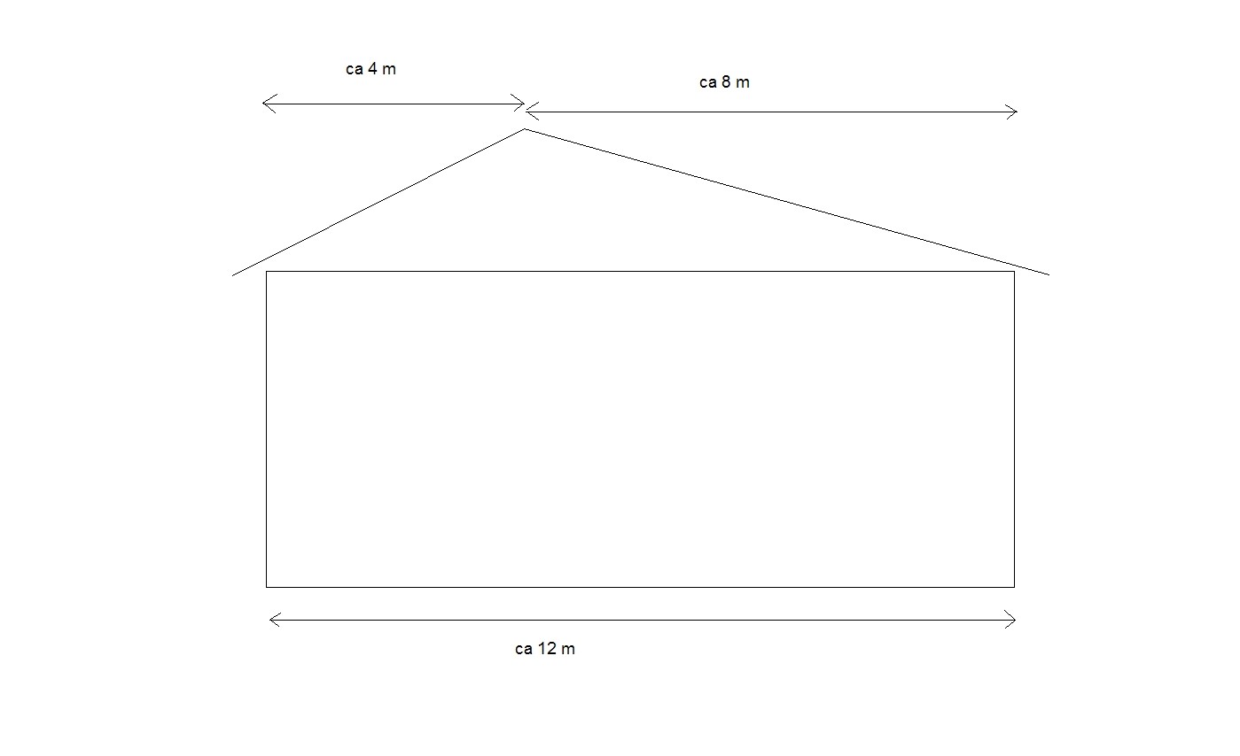 Det är ju en lång flack taksida över högra delen. Taklutning ca 11 grader. Blir väl någon WW-takstol där.