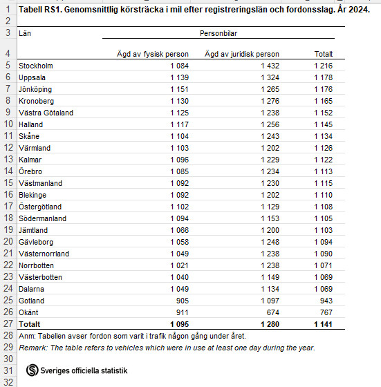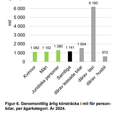 Företagsägda personbilar har en genomsnittlig årlig körsträcka på 1280 mil vilket inte är speciellt mycket högre än för privatägda bilar.P PHPersson skrev: