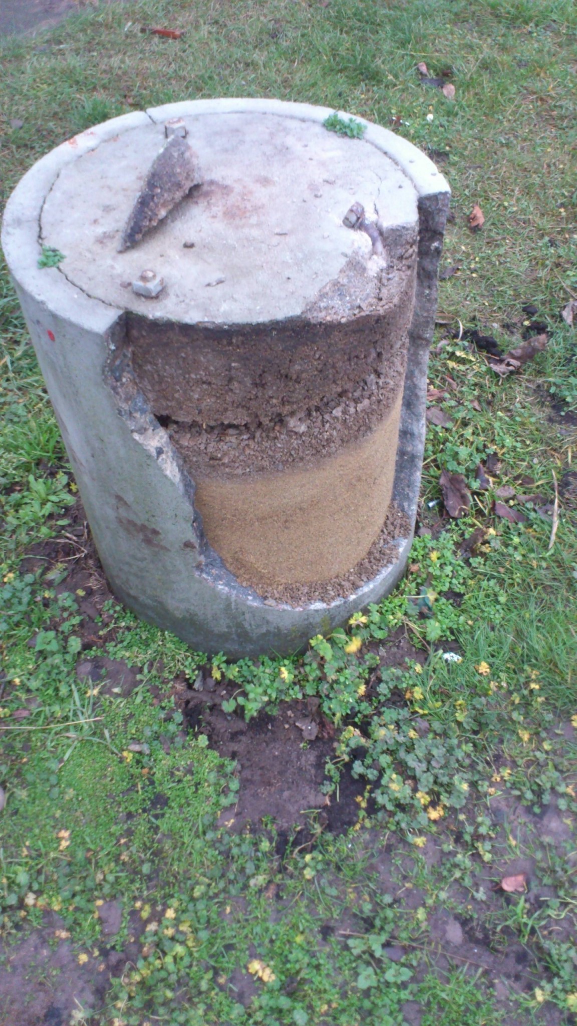 Röret var fullt med grus och verkar som tidigare nämndes används som fundament av nåt slag (flaggstång?). En viss besvikelse sveptes dock över mig då röret verken innehöll några missiler eller annat hemligstämplat material