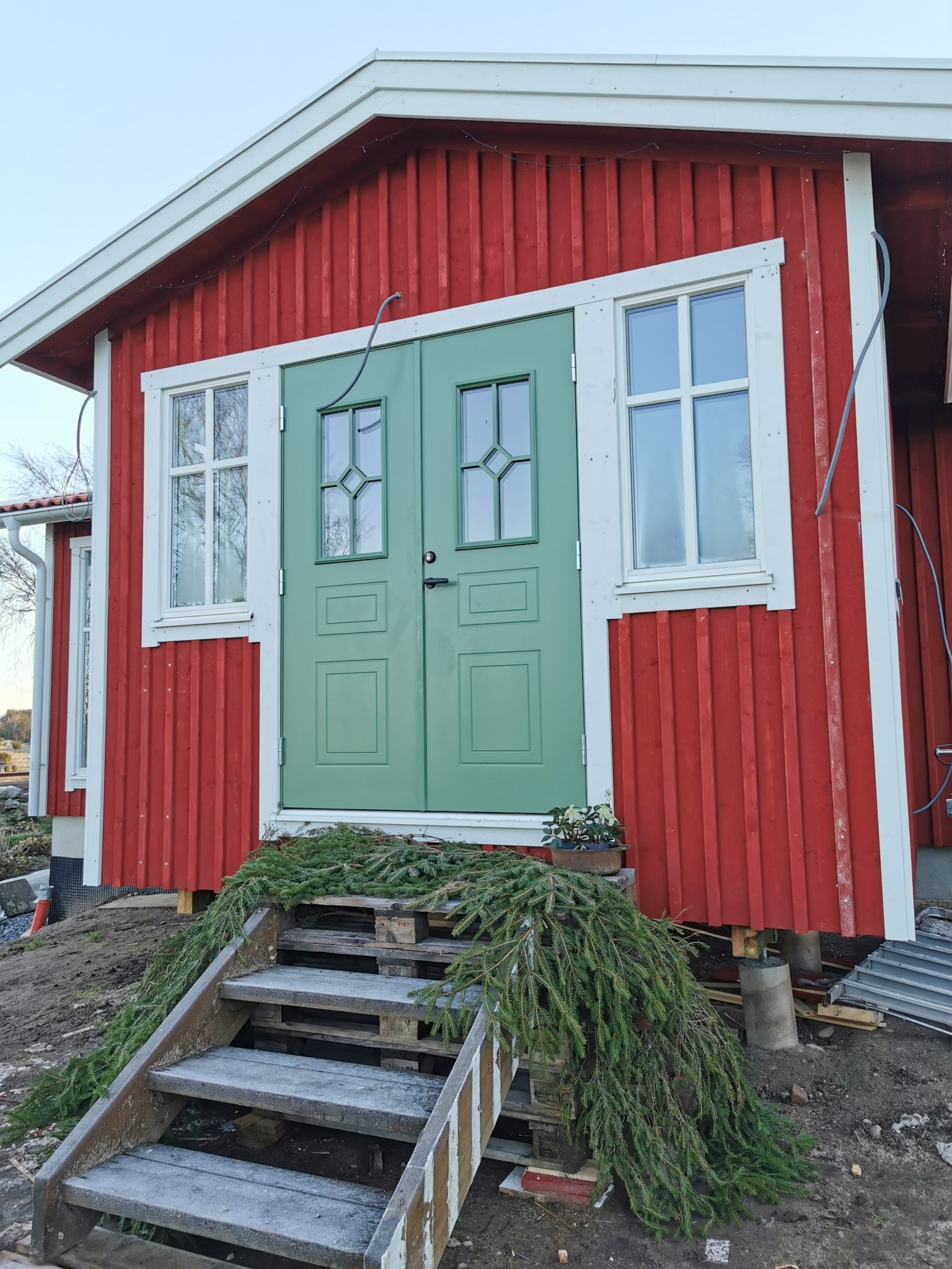 Ny pardörr ska beställas till vårt faluröda hus. Vi vill ha en grön dörr, men hur mycket jag än googlar kan jag inte hitta någon lämplig ncskod som passar med det faluröda. Finns två gröna att välja mellan hos dörrtillverkaren, S5020-G30Y eller S6020-G30Y. Sen är det inte mycket dyrare att välja en egen ncs. Finns det någon som vet vilken som skulle passa? Tack så hemskt mycket på förhand.