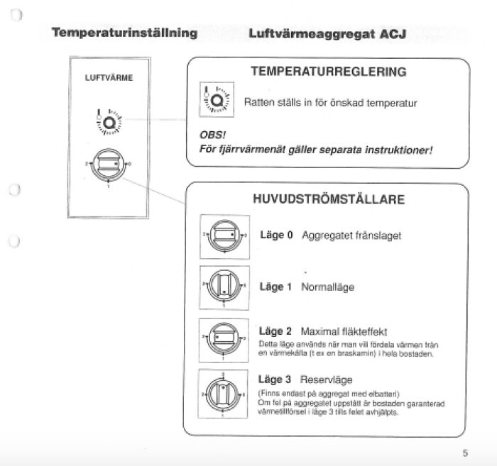 Huvudströmbrytaren har fyra lägen: 0 (Av), 1, 2, och 3.