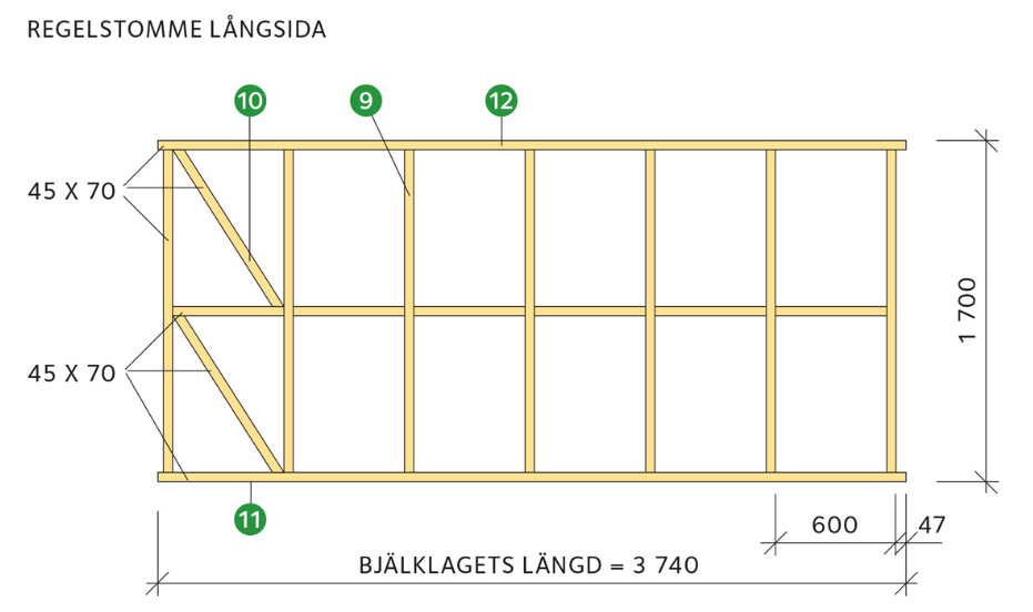 Har tänkt att köra 45x95 reglar men frågan är, när kör man enbart med verikala reglar och när behöver man stödet på mitten där? Har tänkt att utgå från "enkelboden" men göra den lite längre och vill ha 45x95 för att få in lite tjockare isolering. Jag slipper ju gärna extra arbete om det inte är nödvändigt 😁