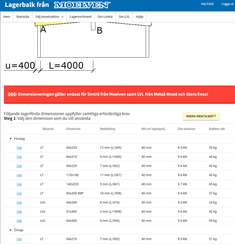 Det lutar åt att det blir limträ från Holmen, om det skulle hjälpa i beräknandet.