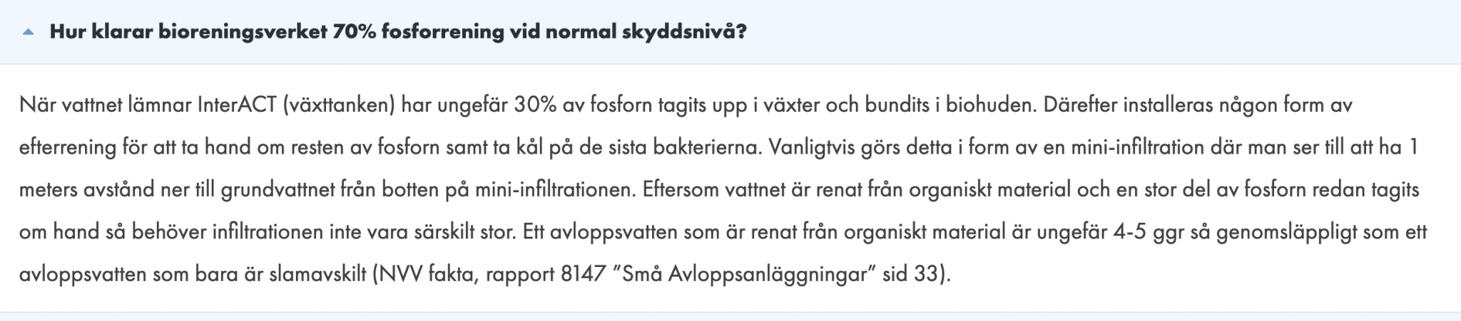 Nej, 70% av fosforn måste renas även vid normal skyddsnivå. Och det klarar inte detta reningsverk, det tar kring 30% av fosforn genom retention. Det betyder att man måste ha en infiltration efter reningsverket för att rena fosforn:K K. L skrev: