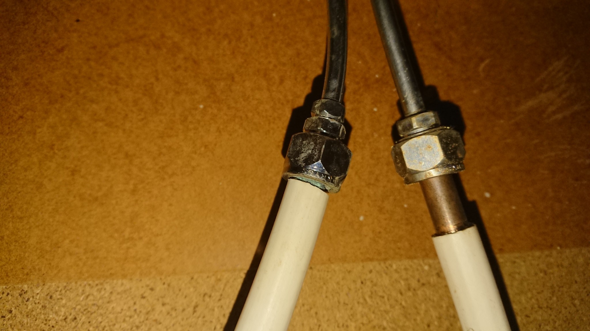 Gamla installationen verkar vara kryssmuttrar på Prisolrör 12mm.