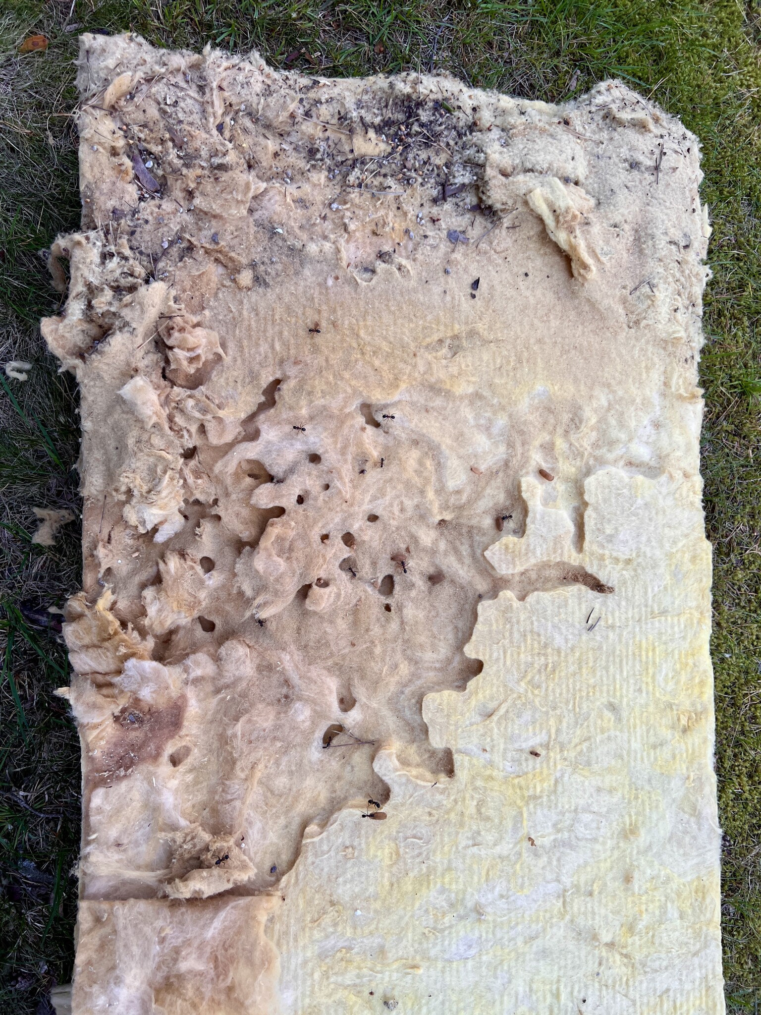 Så frågan jag skulle ställa om hur jag enklast lokaliserar en läcka i ett skjutparti har nu mer kommit att handla om myror. Vilken sort är det? Hästmyror? Med lite tur har jag ju hittat myrboet och även orsaken till att läckan blivit större de senaste året. Dvs. fuktigt trä på ett ställe har lockat till sig myror som ätit upp större läckor. Vad säger ni experter? Bör jag hålla golvet öppet ett tag, och sen lägga igen med ny isolering? Och hur säkerställer jag att jag myrorna inte kommer tillbaka samt att de är borta från platsen? (Kontaktar Anticimex inom kort. Bifogar lite bilder.)