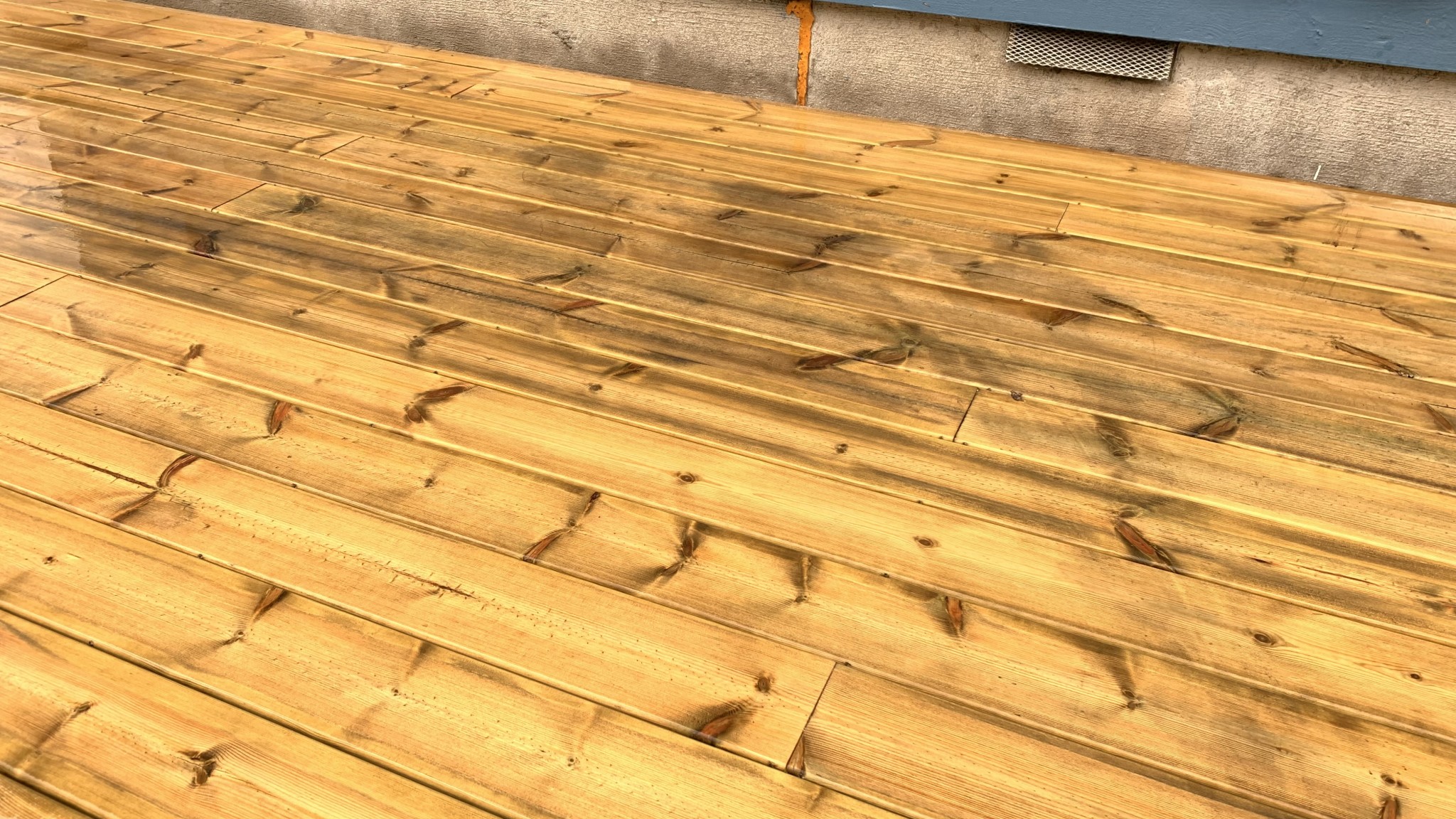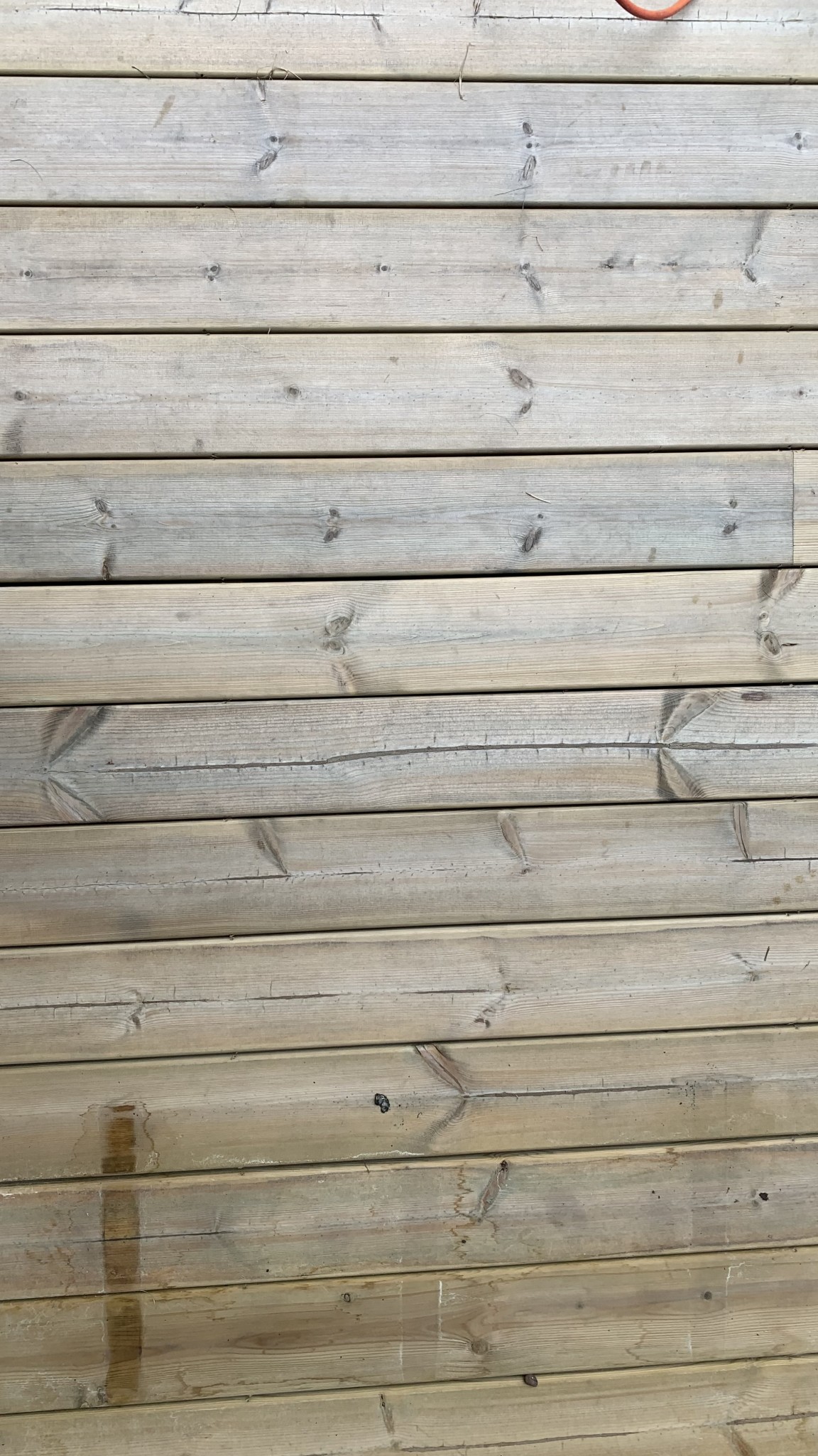 Kärcher terrasstvätt PCL 4 och döm av min förvåning... trallen återfick sin vita färg, mjuka yta och de flesta sprickorna har försvunnit.