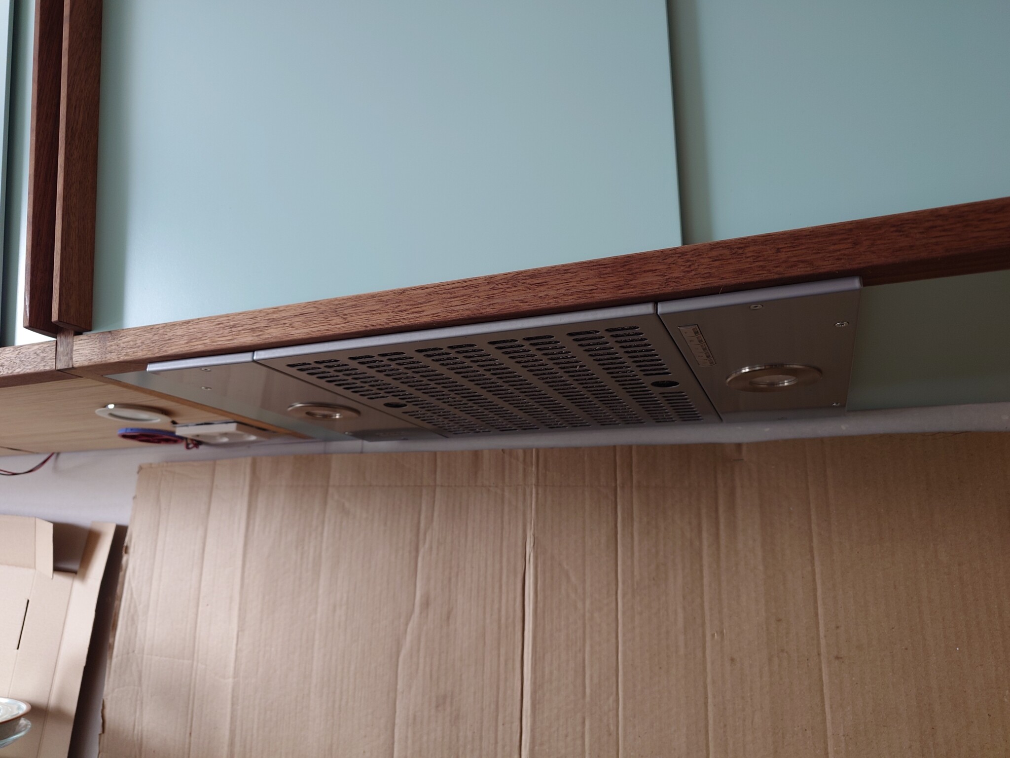 Jag vill ha tips på vilken integrerad spiskåpa ni använder i ert överskåp ovanför hällen och gärna bild på hur den ser ut.