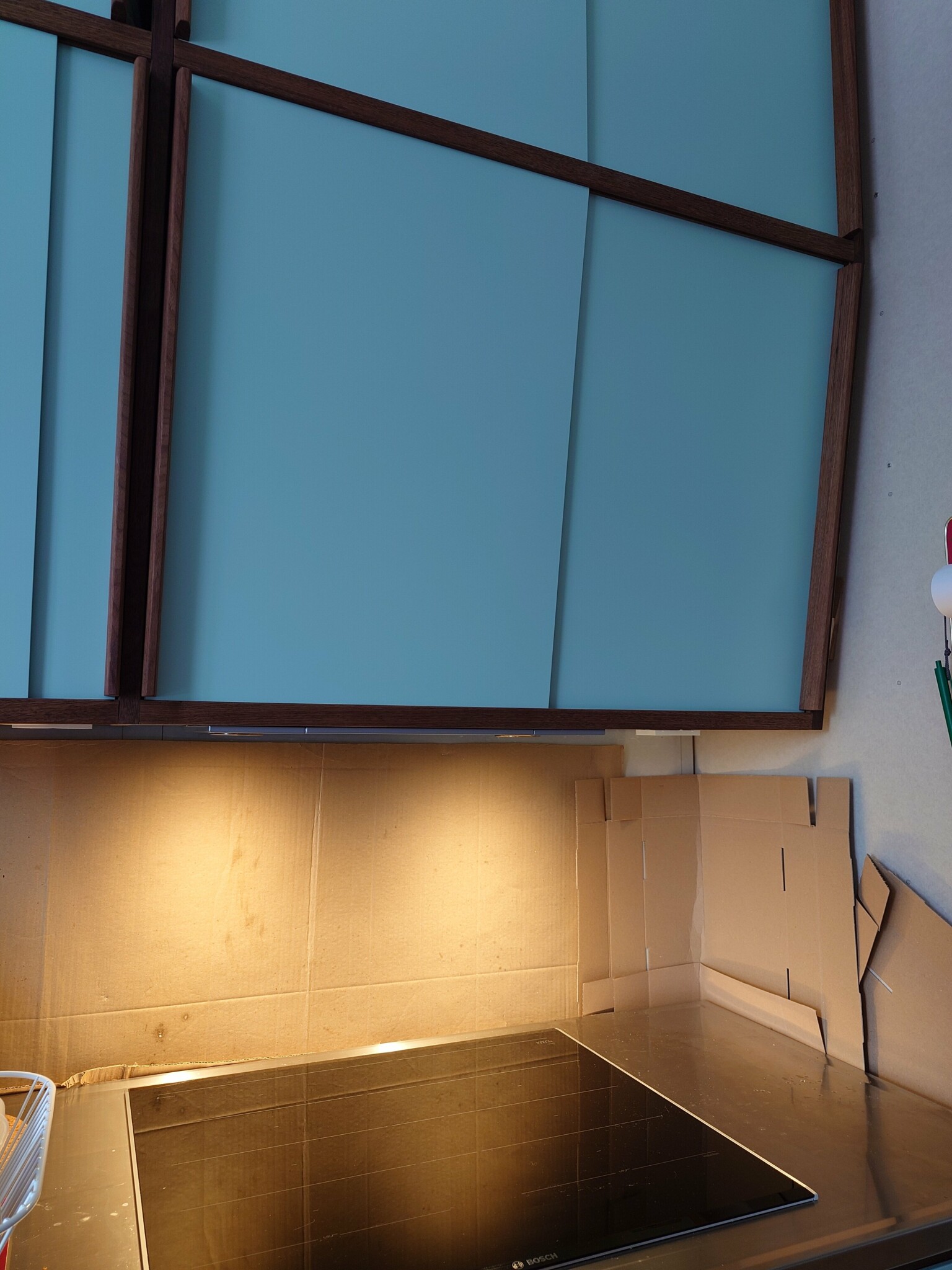 Vi kommer ha en täcksida under skåpen som bara bygger ca 14mm.