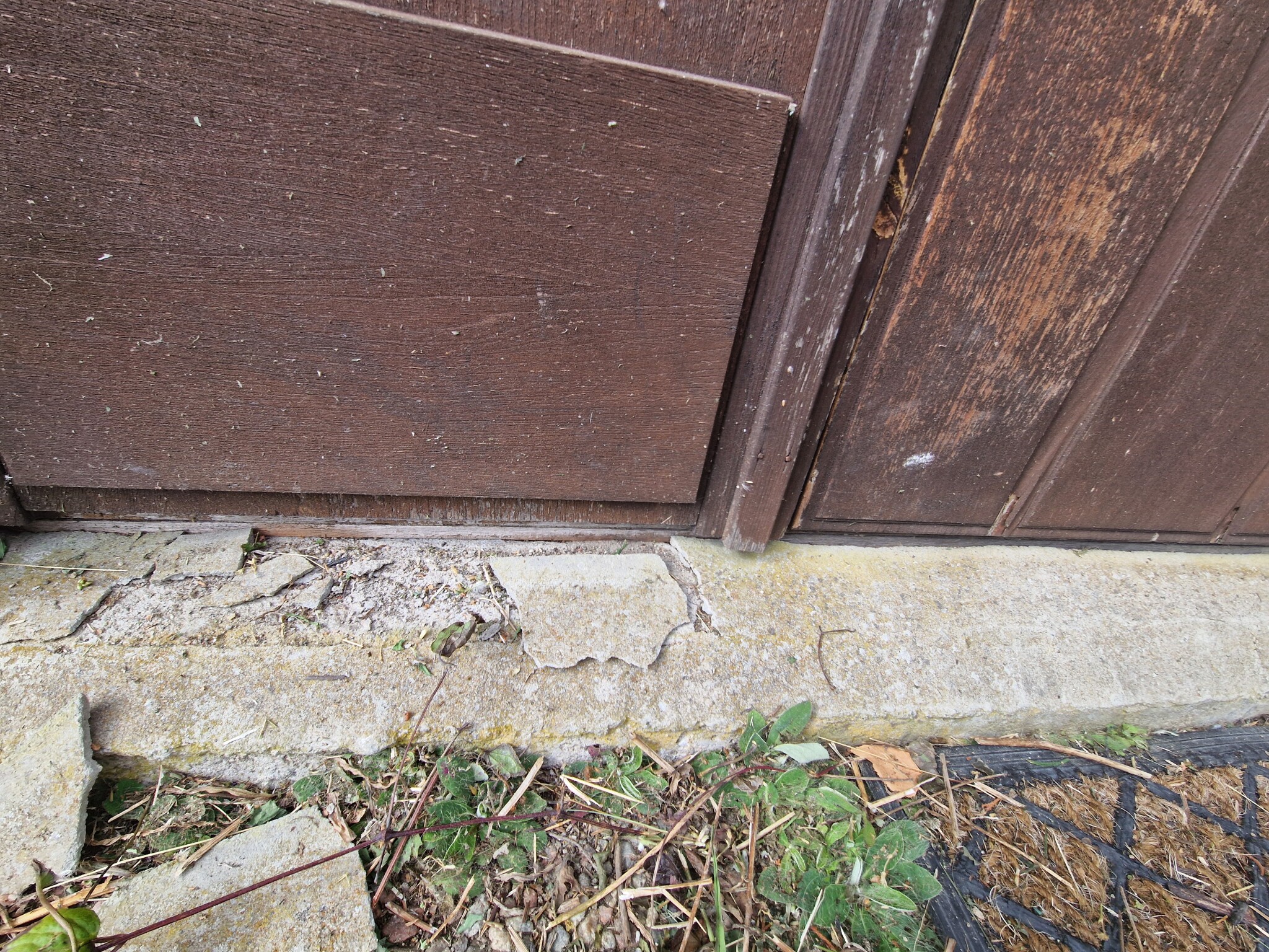 Dörren/huset från 1973 där de delvis gjutit in karmen.
