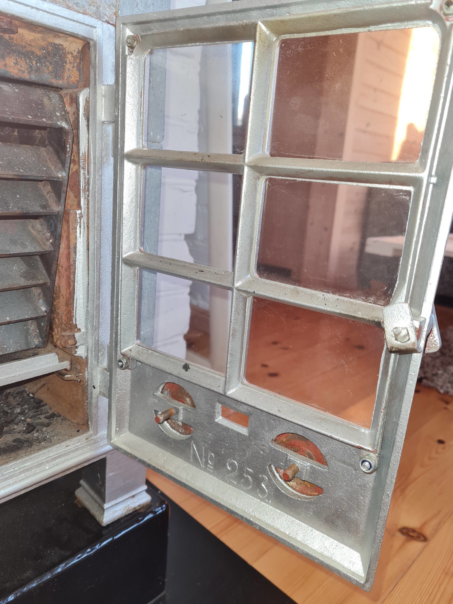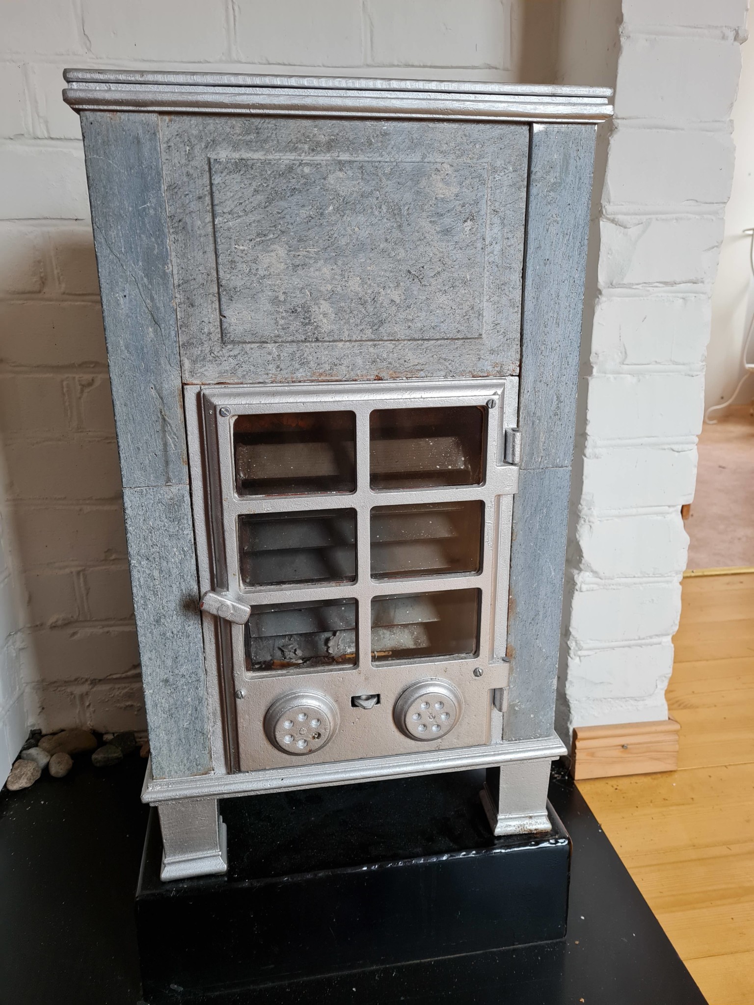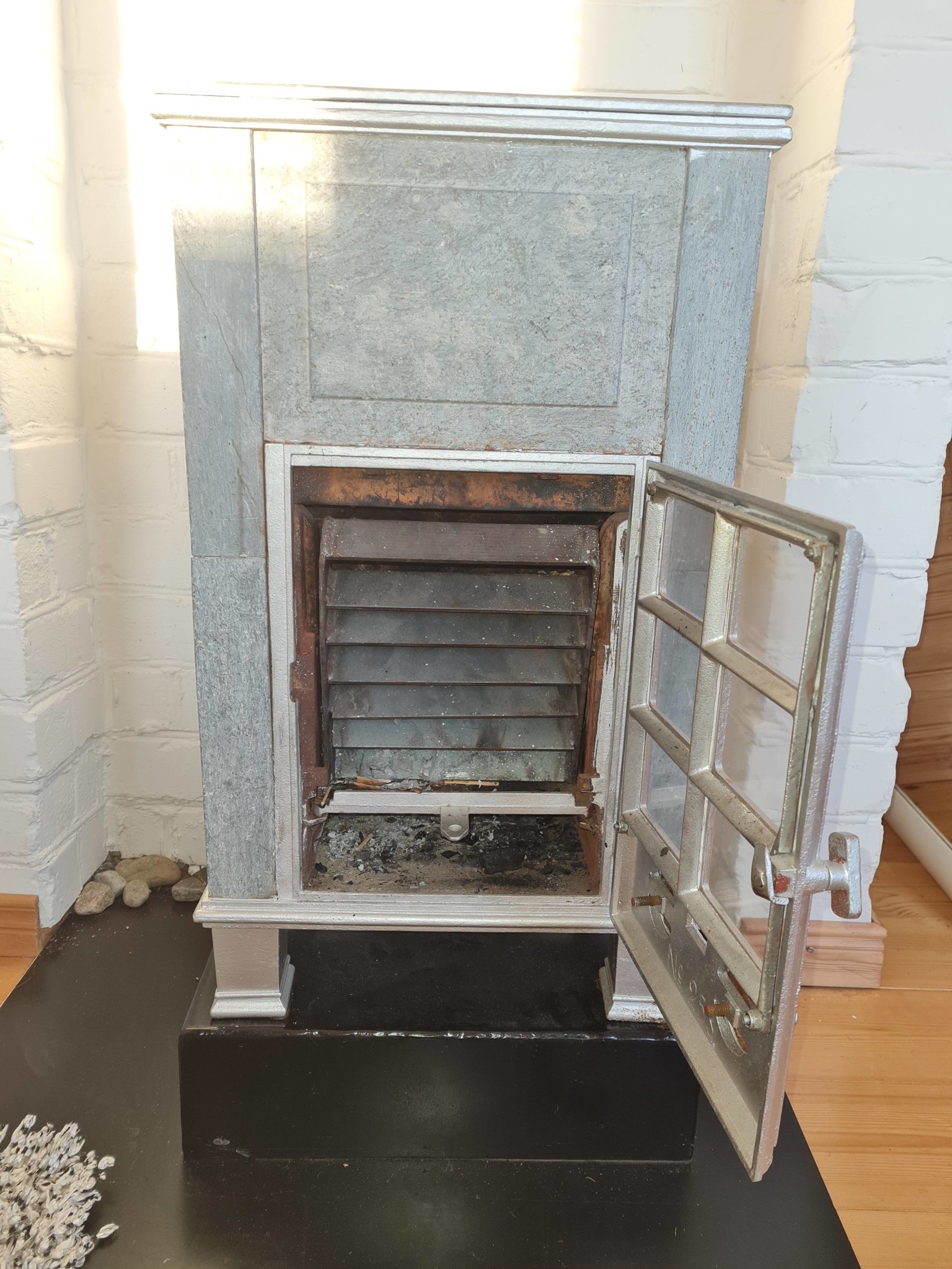 Vi köpte ett hus som är byggt 1912 förra sommaren och i gäststugan står denna kamin. Jag undrar helt enkelt om någon vet vad det är för märke och vad som ska eldas i den? I luckan på insidan står bara ett nummer (295)