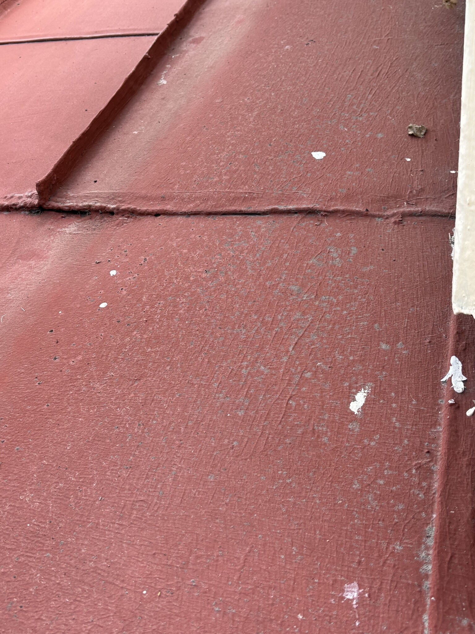 Antingen var taket för dåligt innan man blästrade, eller så har man blästrat sönder taket, eller så har man målat med fel färg, eller något annat som andra kan bättre än mig.