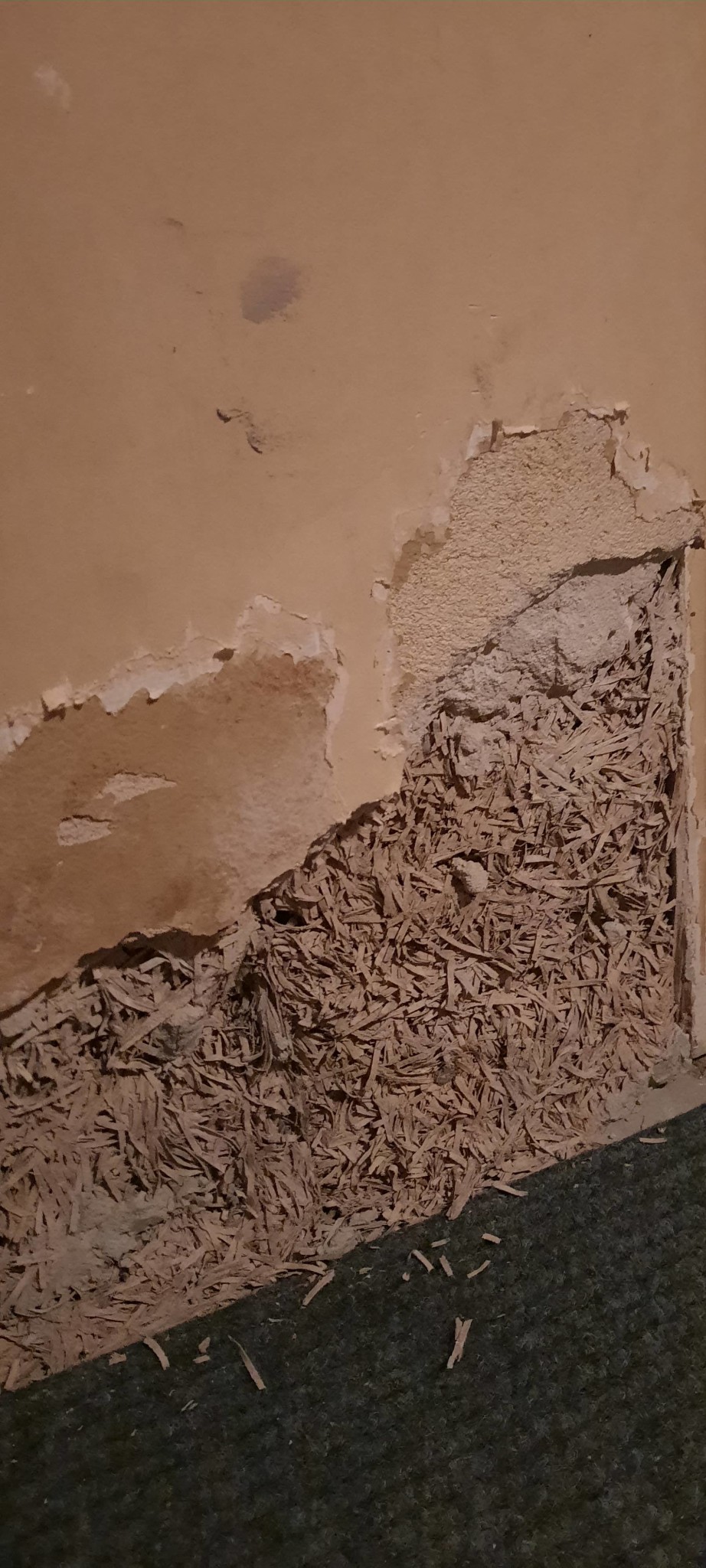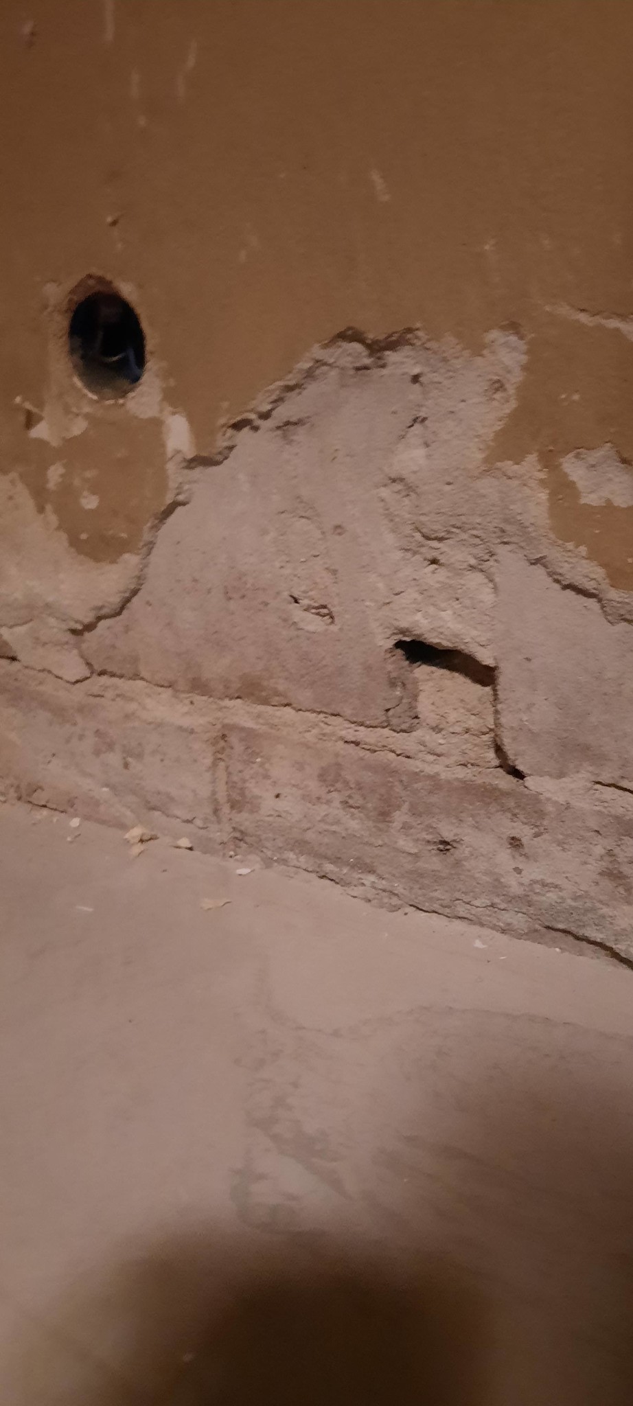Huset är ett egnahemshus från 40-talet ooch väggarna har originalfärg under tre lager tapet och det är ingen som gjort något åt väggarna sedan det byggdes kan tilläggas. Väggen som är träullit är en yttervägg om det nu kan påverka material.