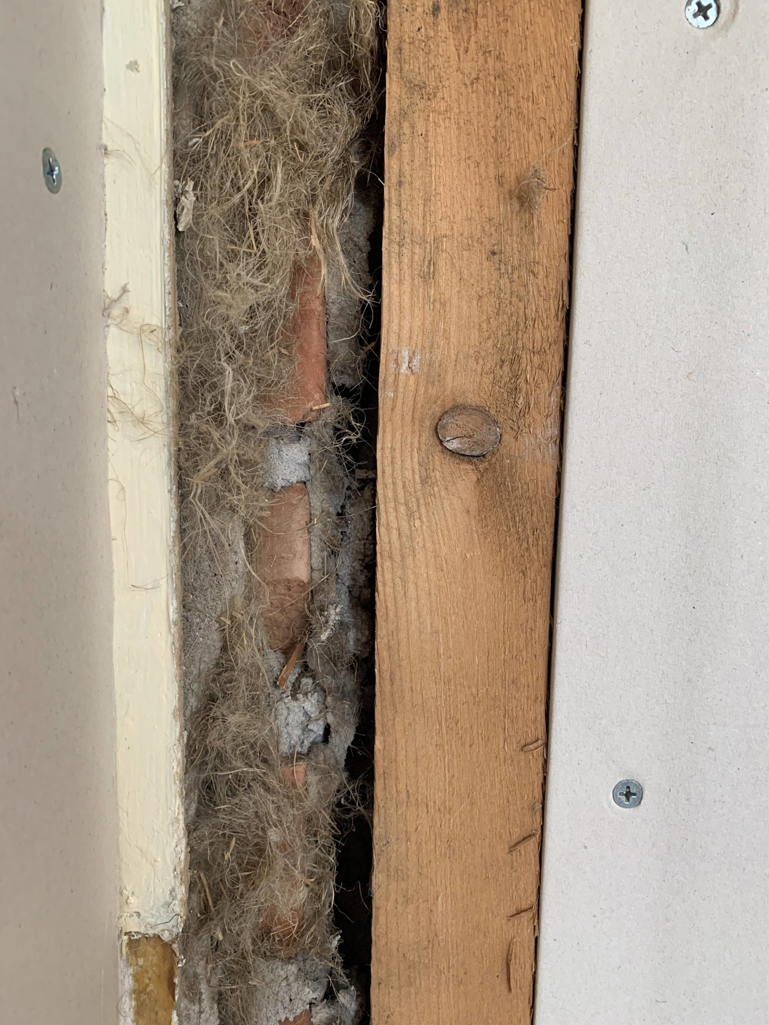 i vårt nyinköpta radhus har vi tagit bort en gammal garderob som stod i ingång/hallen. Bakom denna var det i ena hörnet en glipa i väggen. Hallen är, vad jag förstått, inte byggd ifrån början till radhuset utan lagts till senare som en tillbyggnad. Glipan är 5 cm bred och ca 2,20 cm hög.