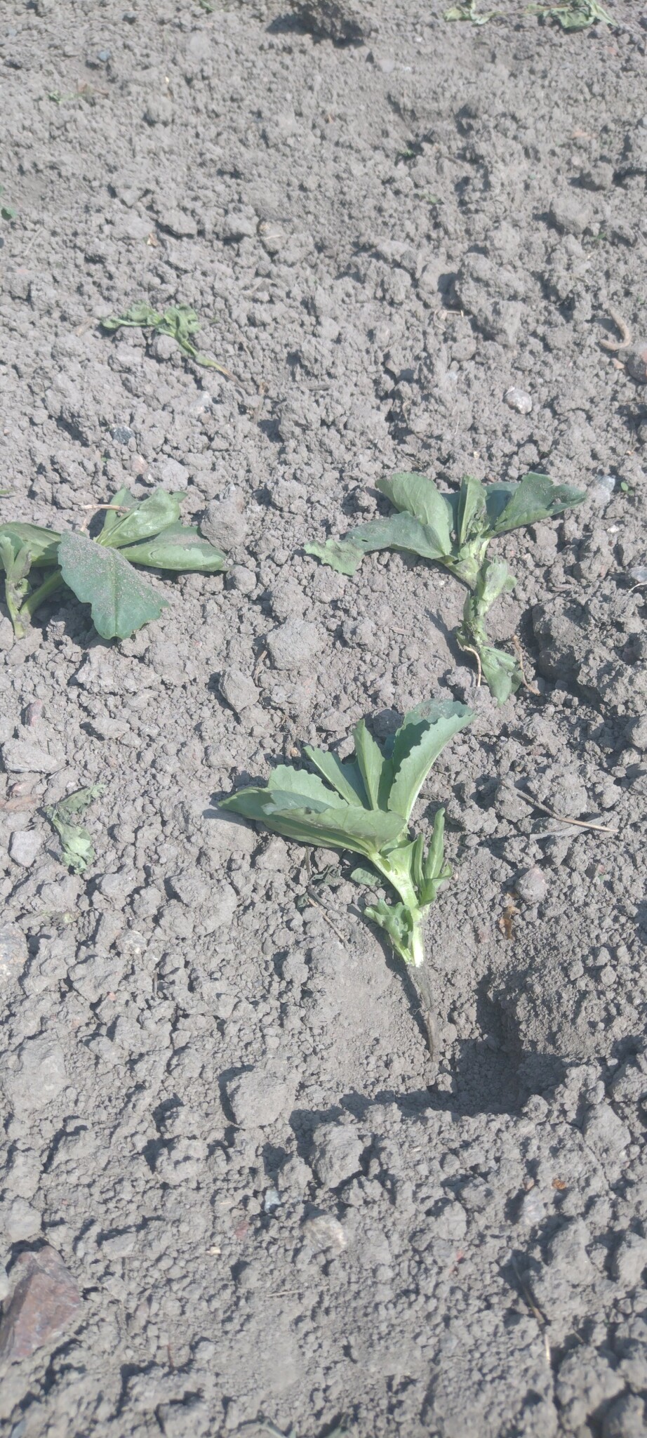 Igår så såg jag några små gropar där det borde ha varit en 5 cm hög bondböna. Idag så var alla 4 rader med ungefär 150 bondbönor antingen dödade eller på väg att dö.