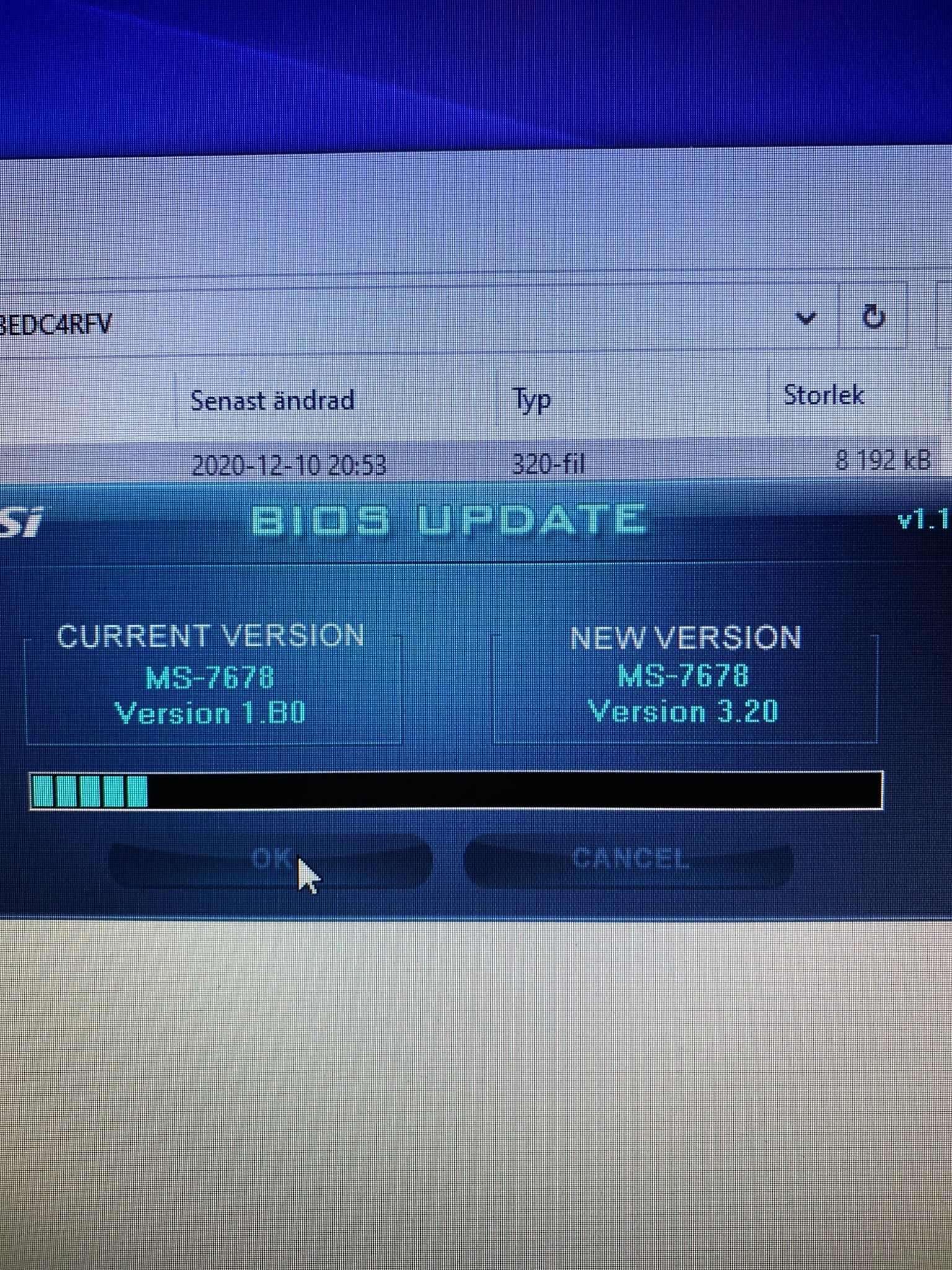Hitta rätt BIOS till ditt moderkort och följ instruktionerna. Om inte minnena funkar sedan så kan man möjligen labba med inställningar i BIOS. Alternativt köpa nya minnen. Jag brukar försöka köpa minnen som finns på moderkortets kompatibilitetslista.R Rolle85 skrev: