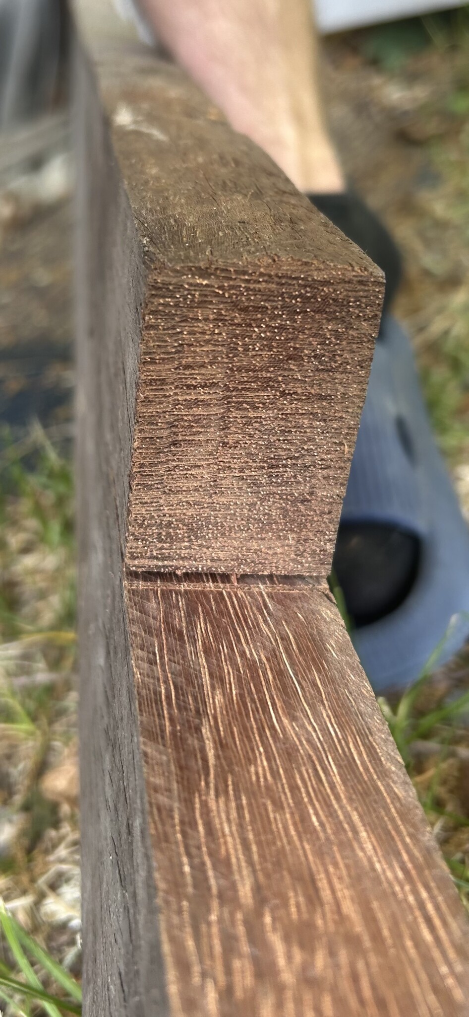 Jag tycker det är för rött för både teak och akacia, stämmer inte med färg eller ändträstrukur för wenge och inte heller ipe.