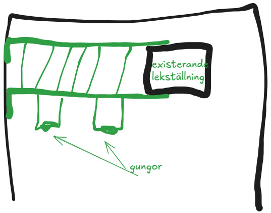 Tanken är att kunna hänga i gungor och liknande men samtidigt kunna ha gräsmattan fri under.