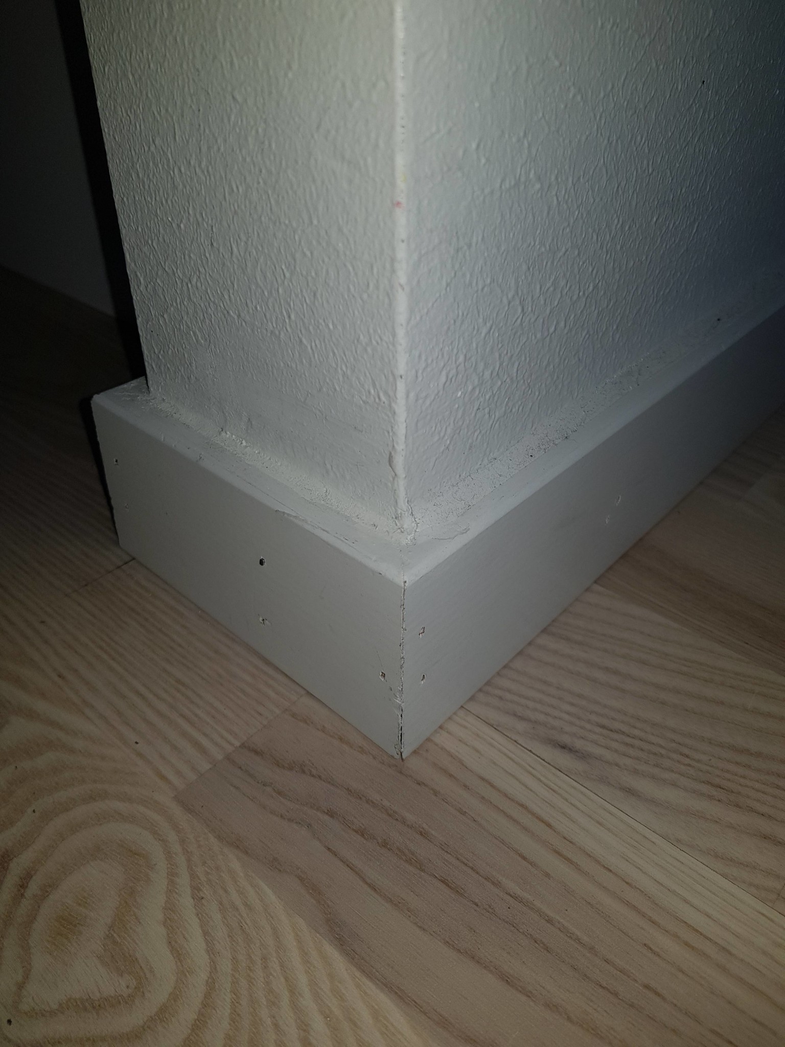 Dom hade t.ex skjutit socklar, foder och taklister med enorma dykertspikar. Fula stora hål. Men det va inget fel. Nu ca 2år så tänker jag inte på dem. Skulle jag göra om skulle jag använda betydligt mindre spik.