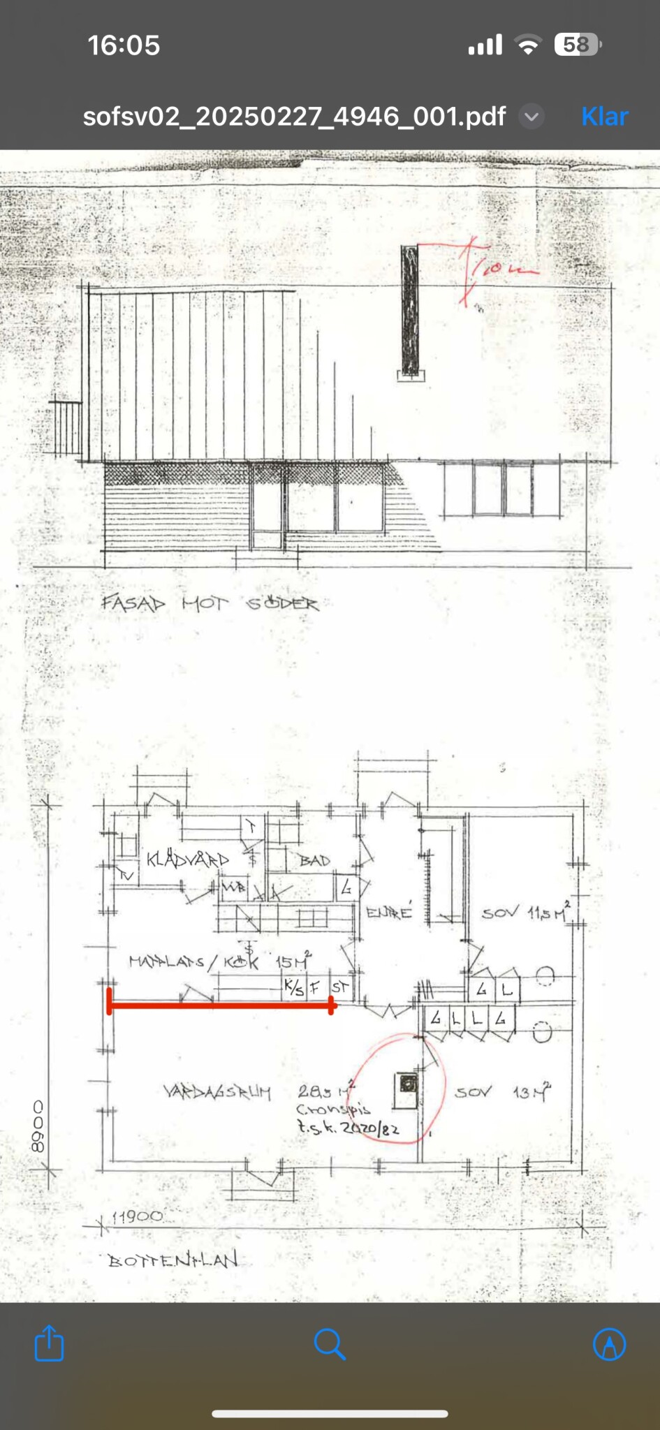 Finns det något sätt att se på en ritning nedan om en vägg är bärande?