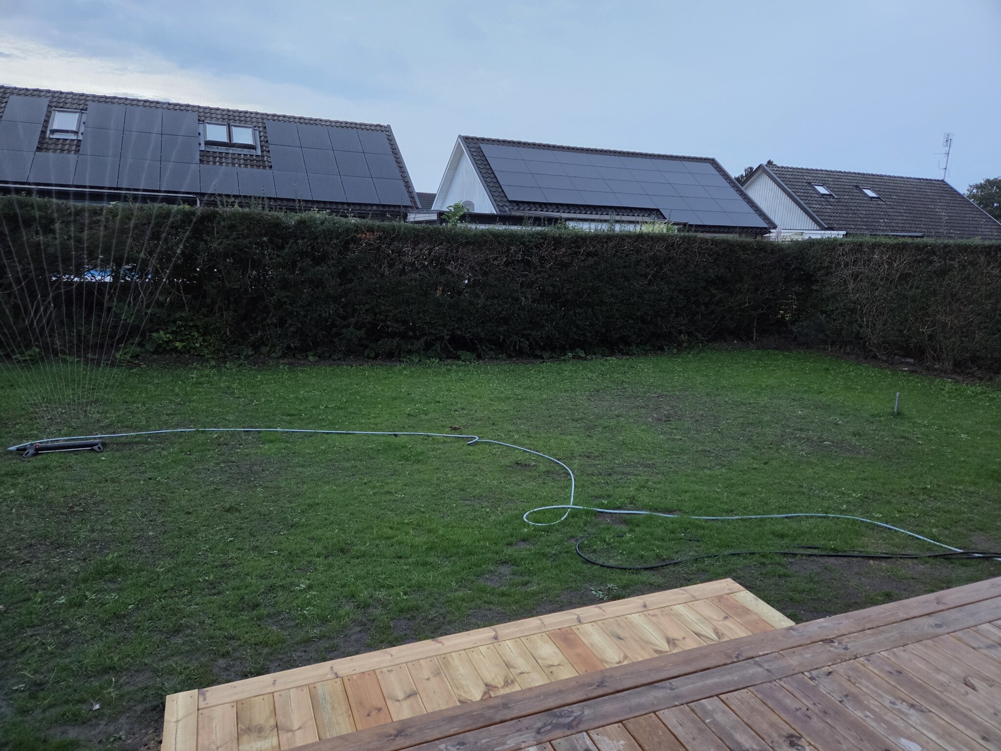 Nuvarande tankegångar är att lägga markduk över höst-vinter och sen anlägga gräsmatta i vår och utan att behöva schakta bort jord…. Men ser ju lite trist ut under tiden.