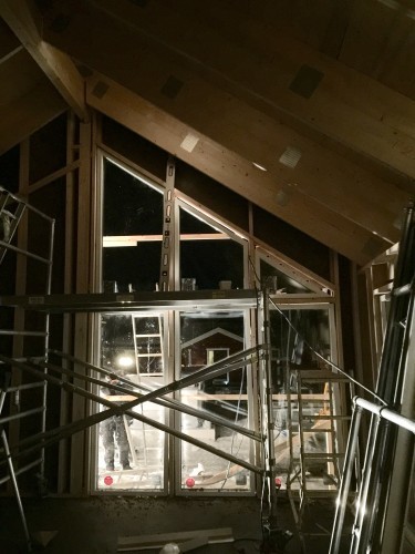 Kanske skall tillägga att två av de sneda fönsterna i vardagsrummet har blivit fel. Så saknas ett fönster. Sedan har de skickat dubbletter på de tre sneda. Så om åtta veckor borde de rätta komma.