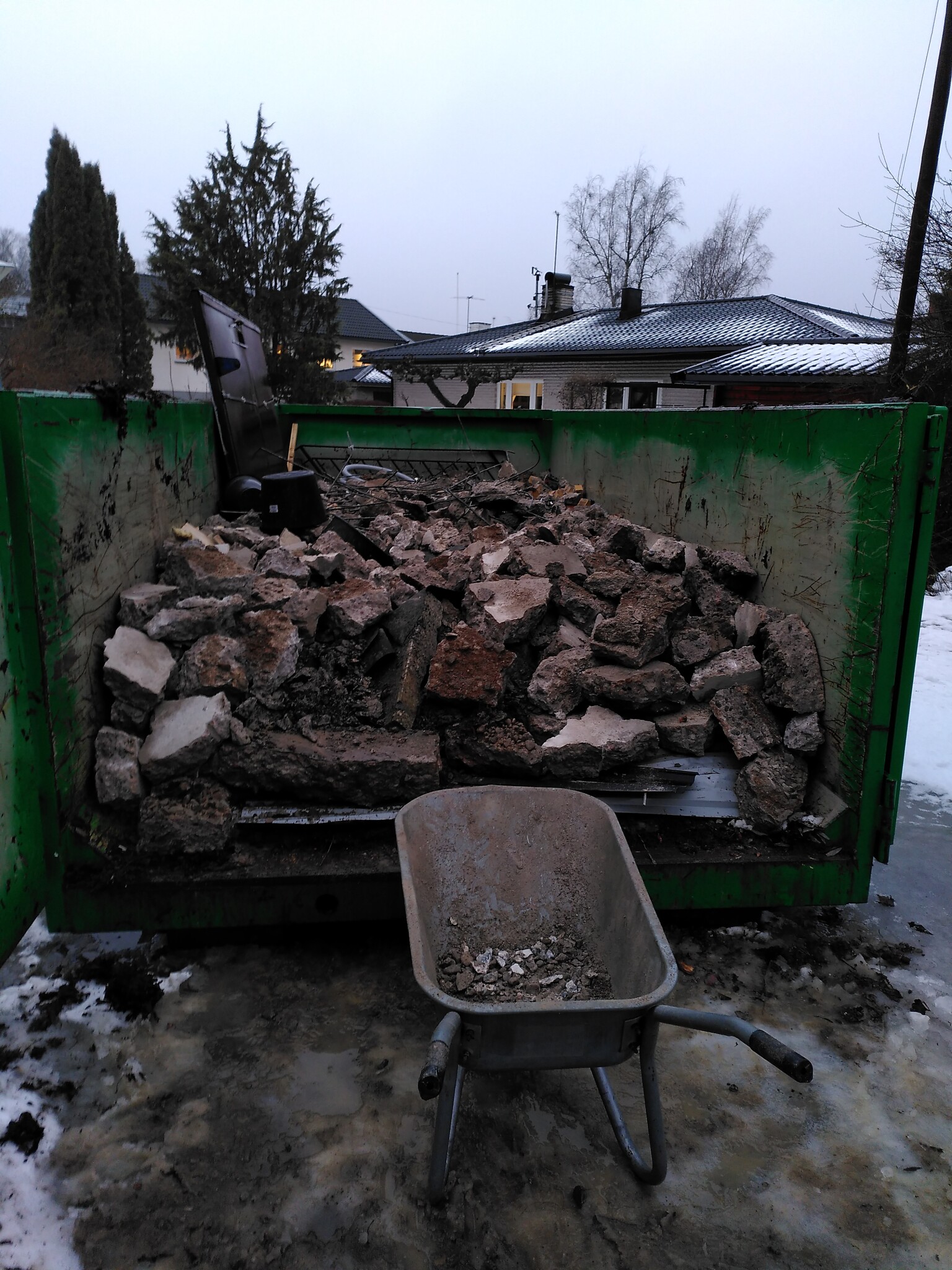 Sedan var det bara att lasta i container. Tror att det allt som allt med garage och trappor blev runt 50 ton betong.