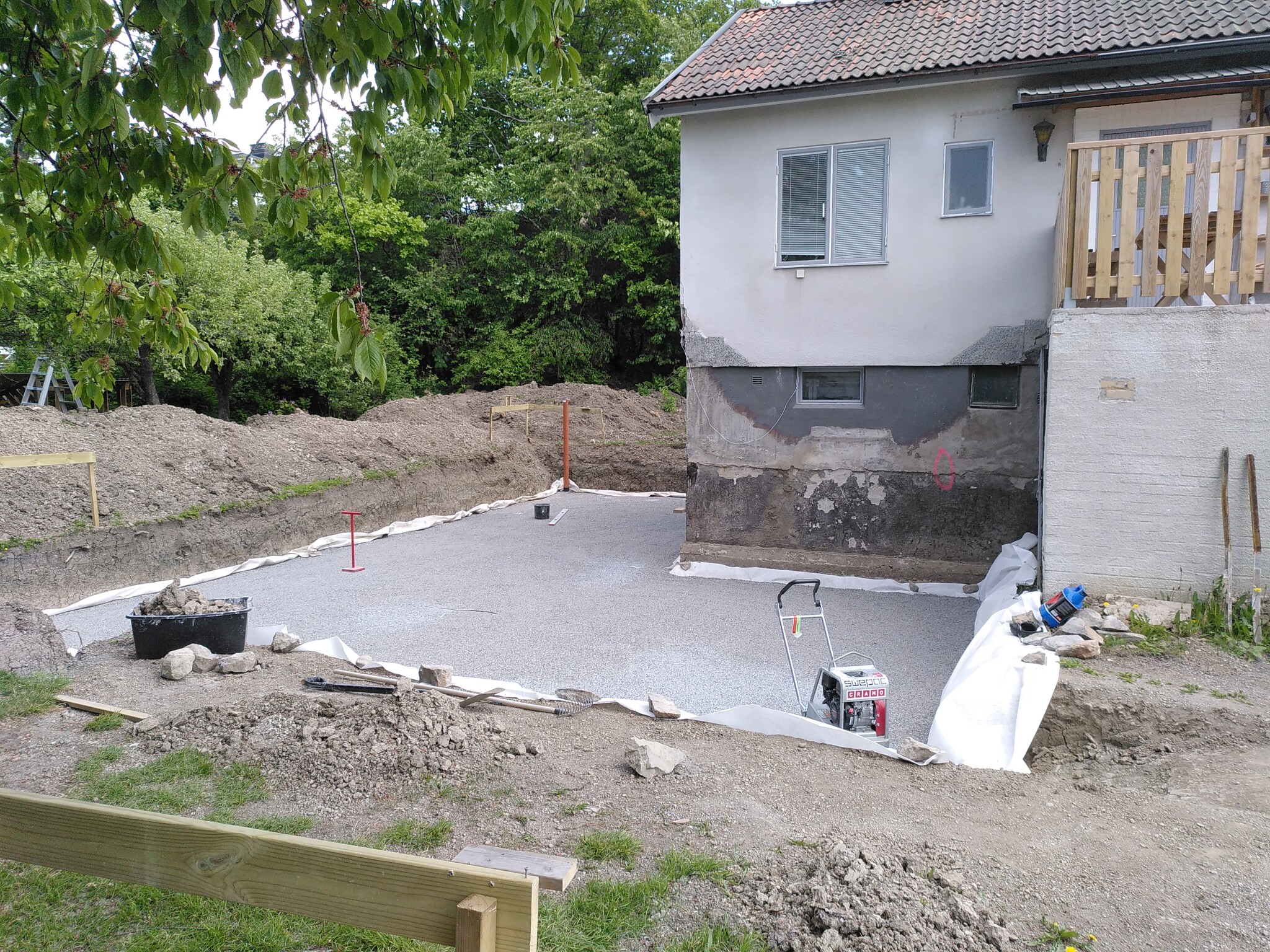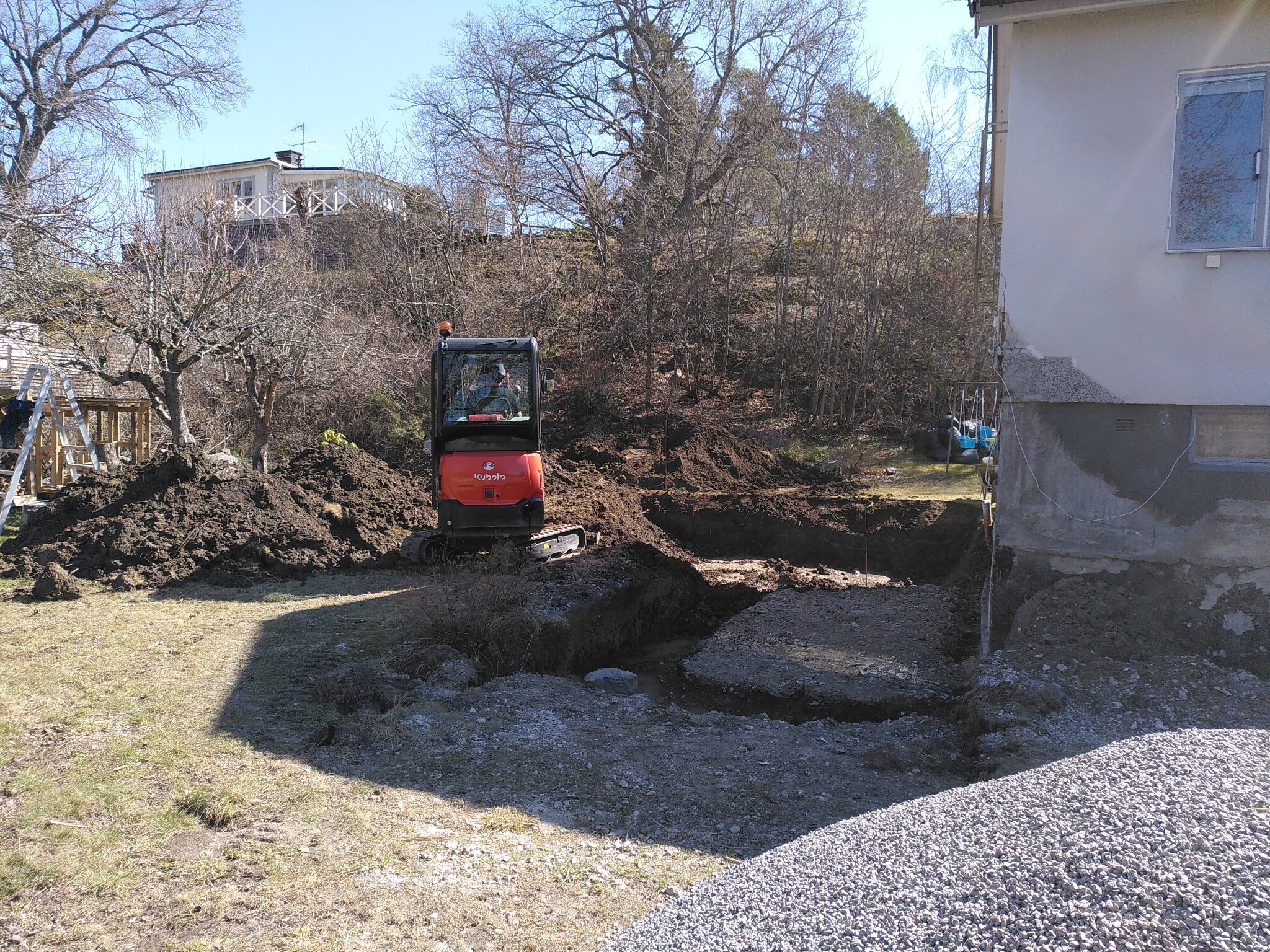 Sedan fick det vara slut på handjagandet ett par dagar. Tog in en grävare som grävde för den nya källaren.
