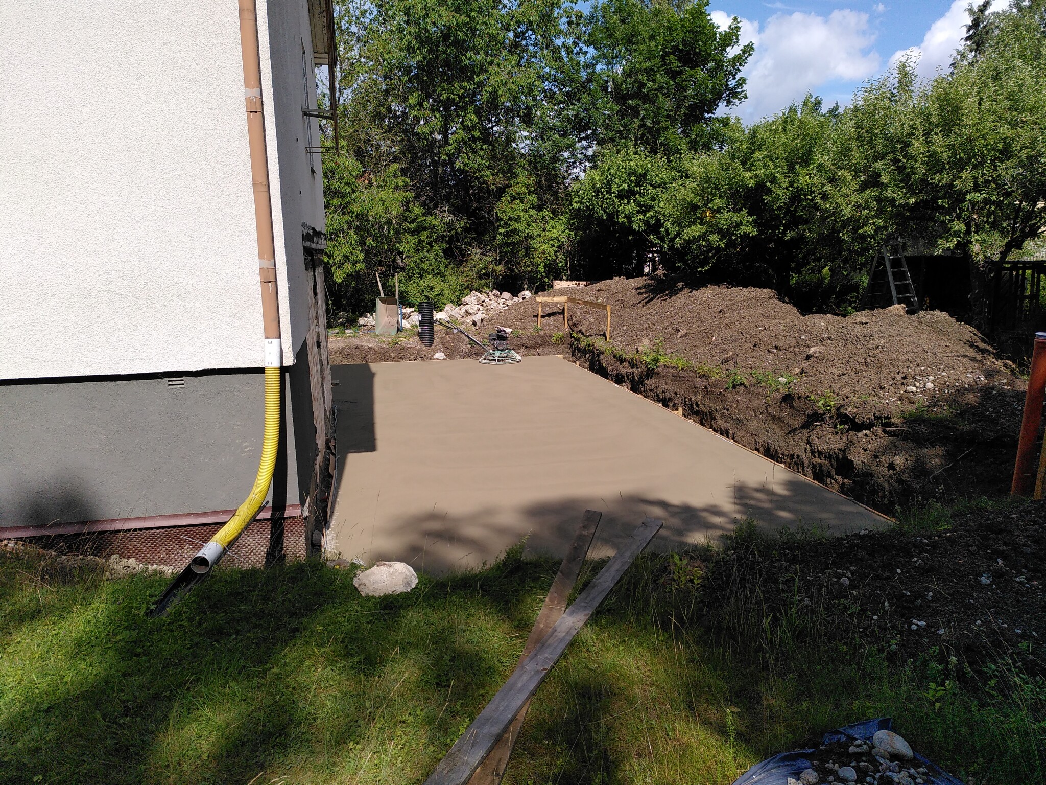 Sedan gjutning. Här tog jag in proffs igen. Som man ser var det en perfekt dag för att gjuta, och den glättade ytan blev riktigt bra.