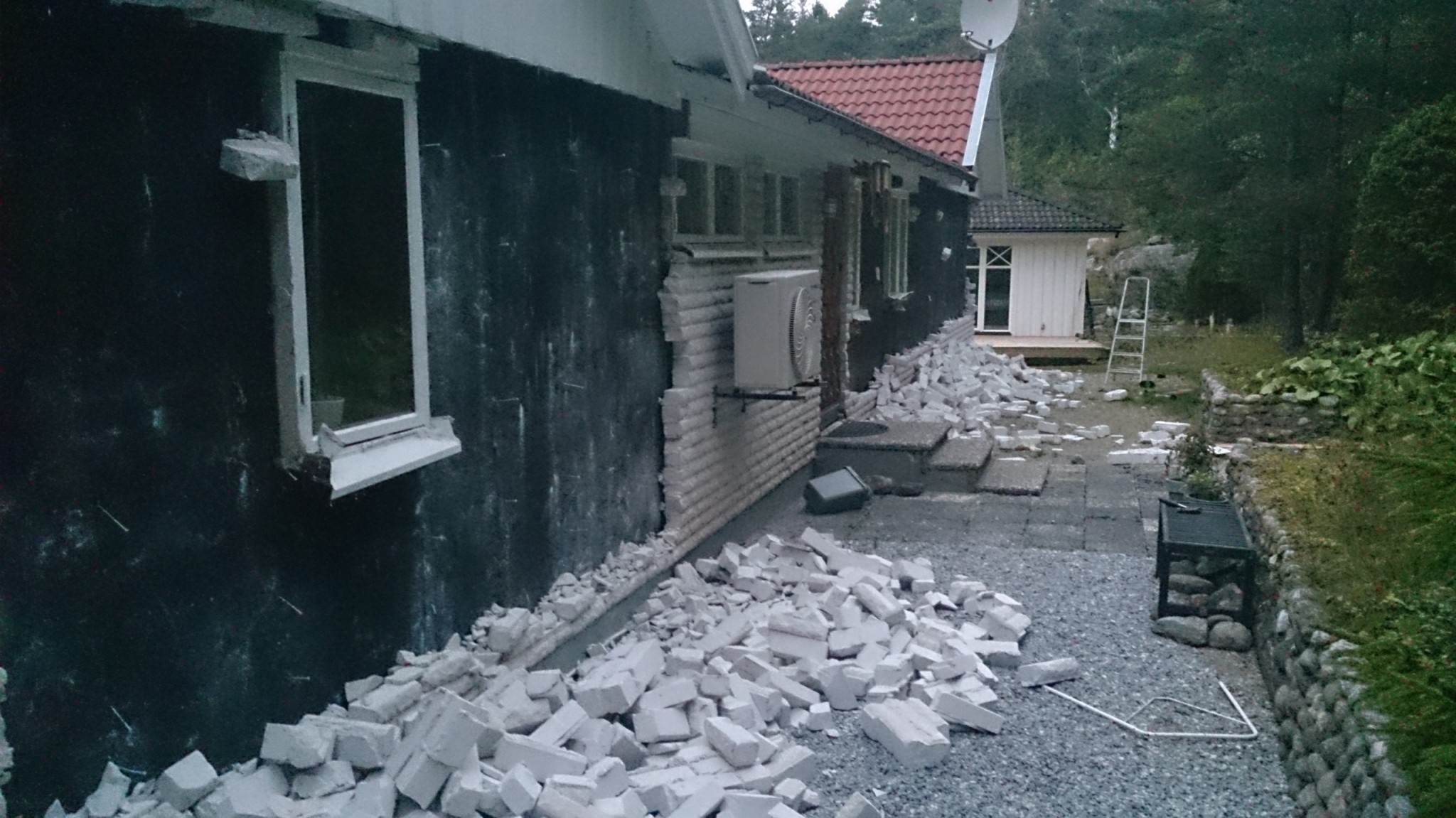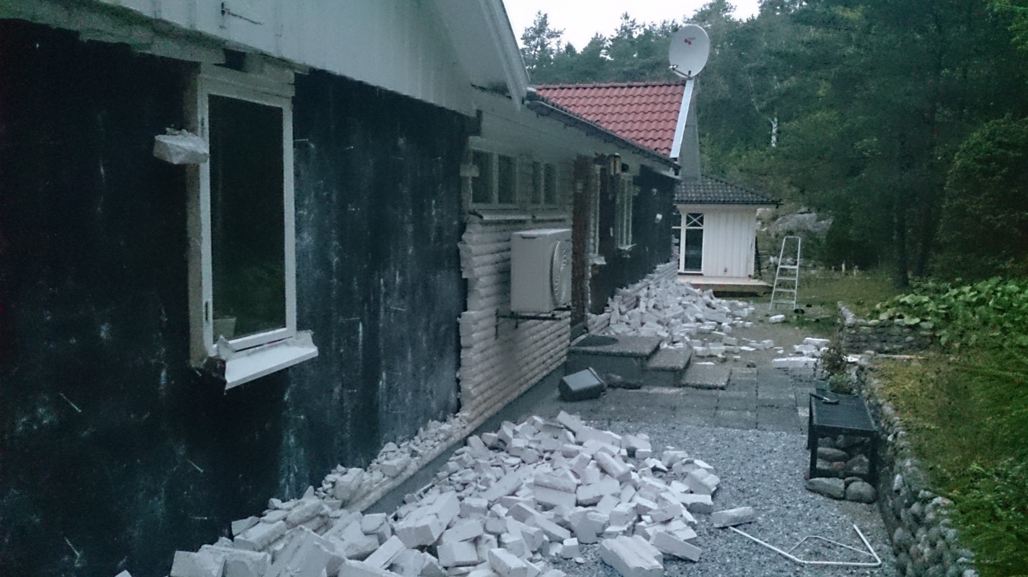 På utsidan ser man maskinerna från borrningen av bergvärme!