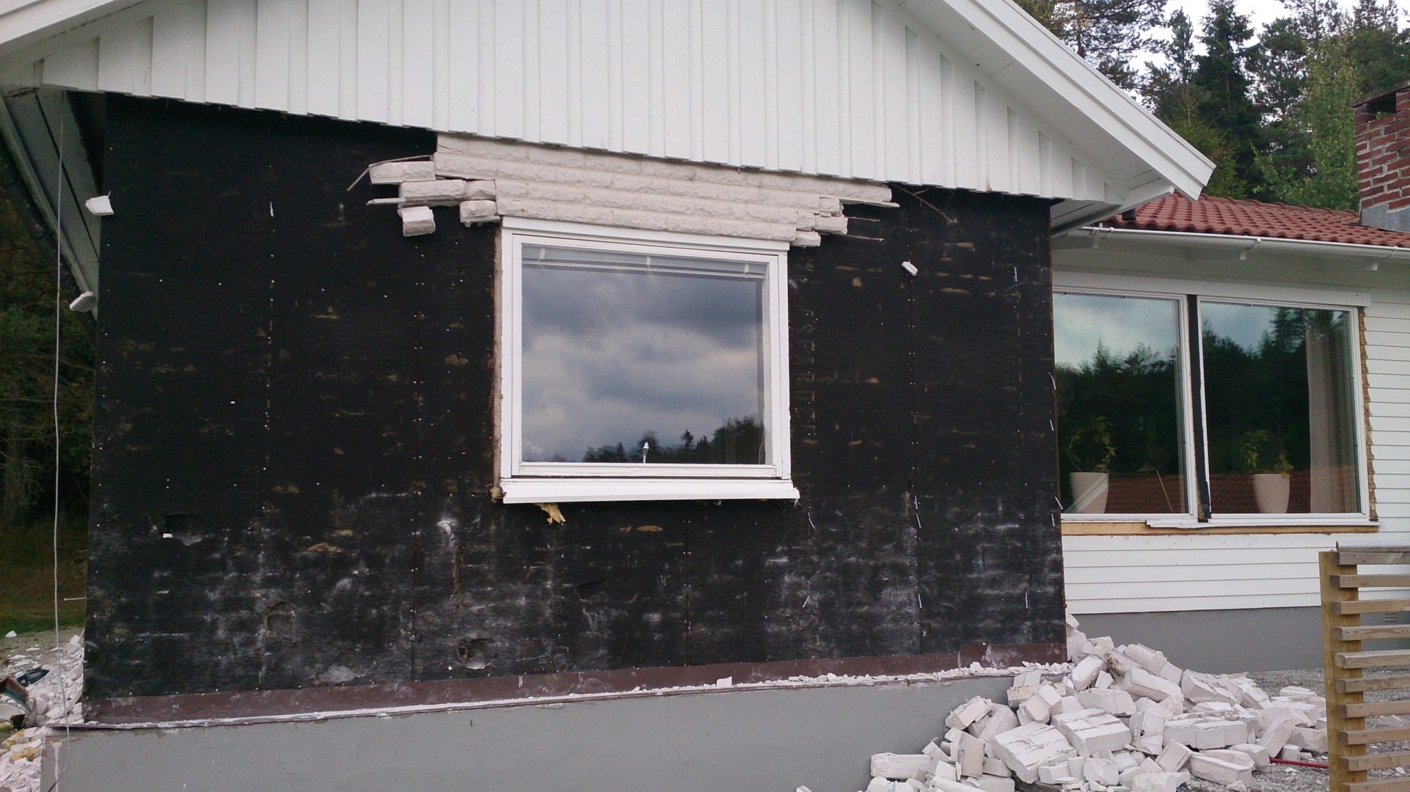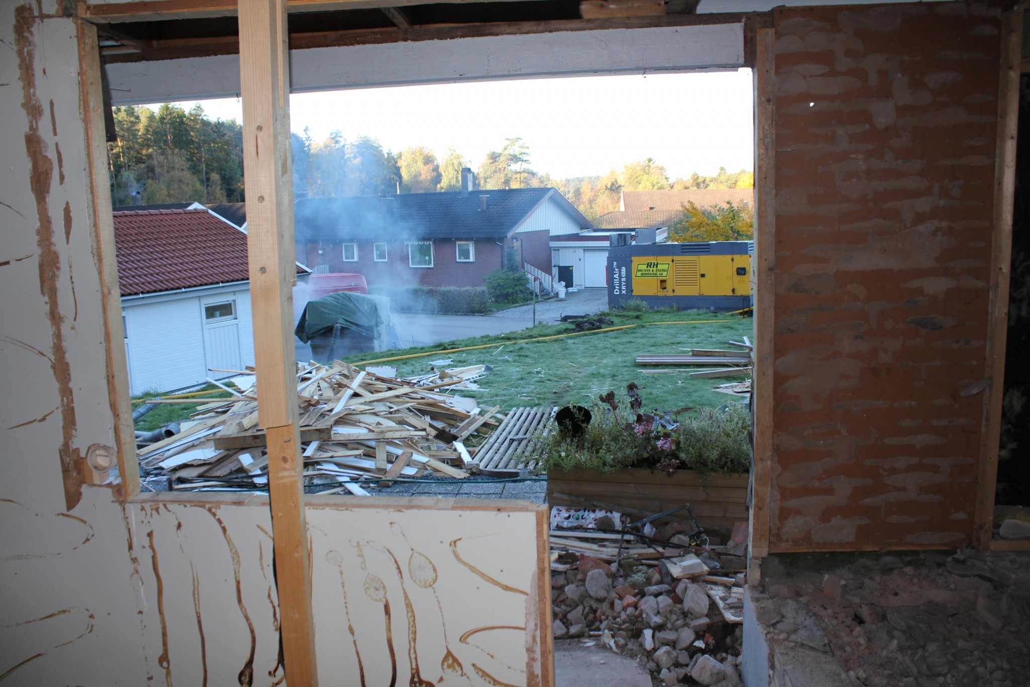 Här ser man där skorstenen stod förut.