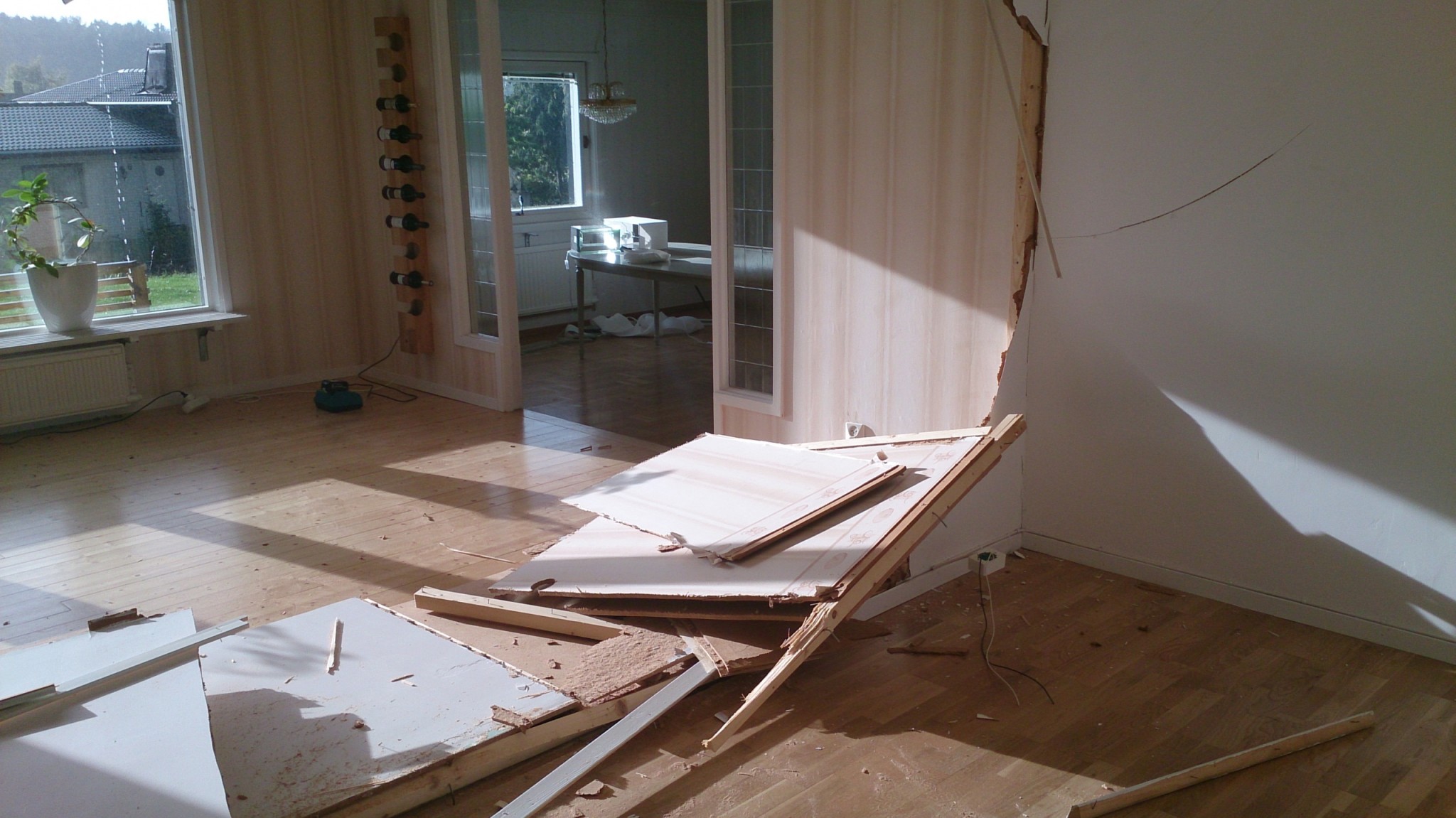 Varför rev du skorstenen? Det är lite lustigt, för igår frågade min son om vi inte kan riva vår skorsten, för då kunde han få bygga ett litet rum där murstocken sitter. Jag sa, nej, då rasar säkert hela huset ...