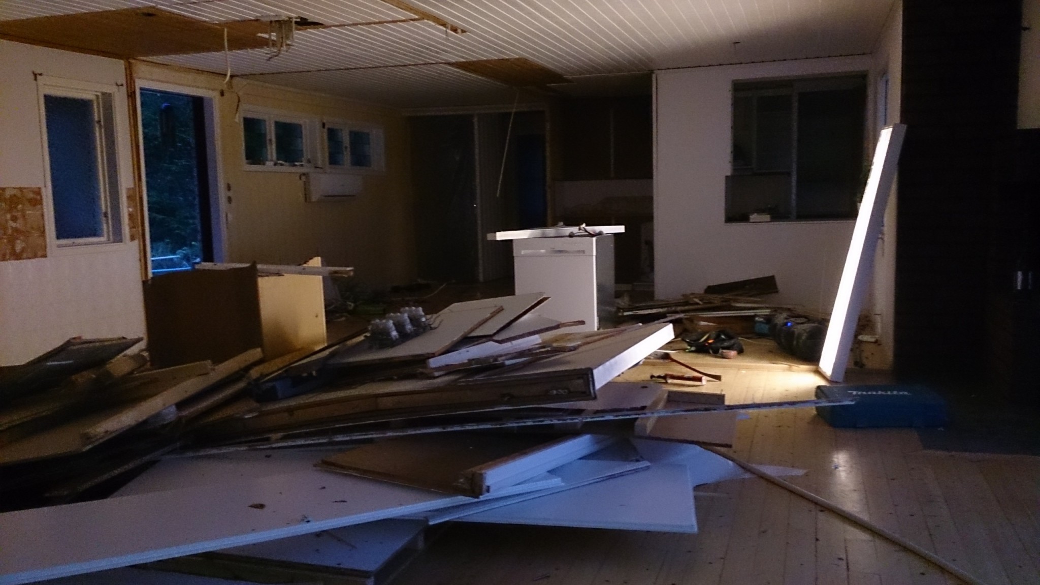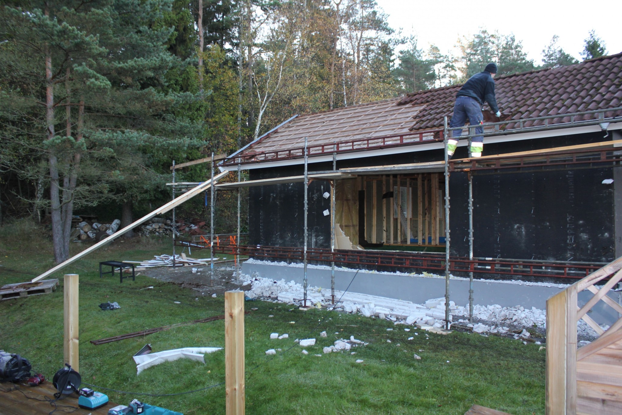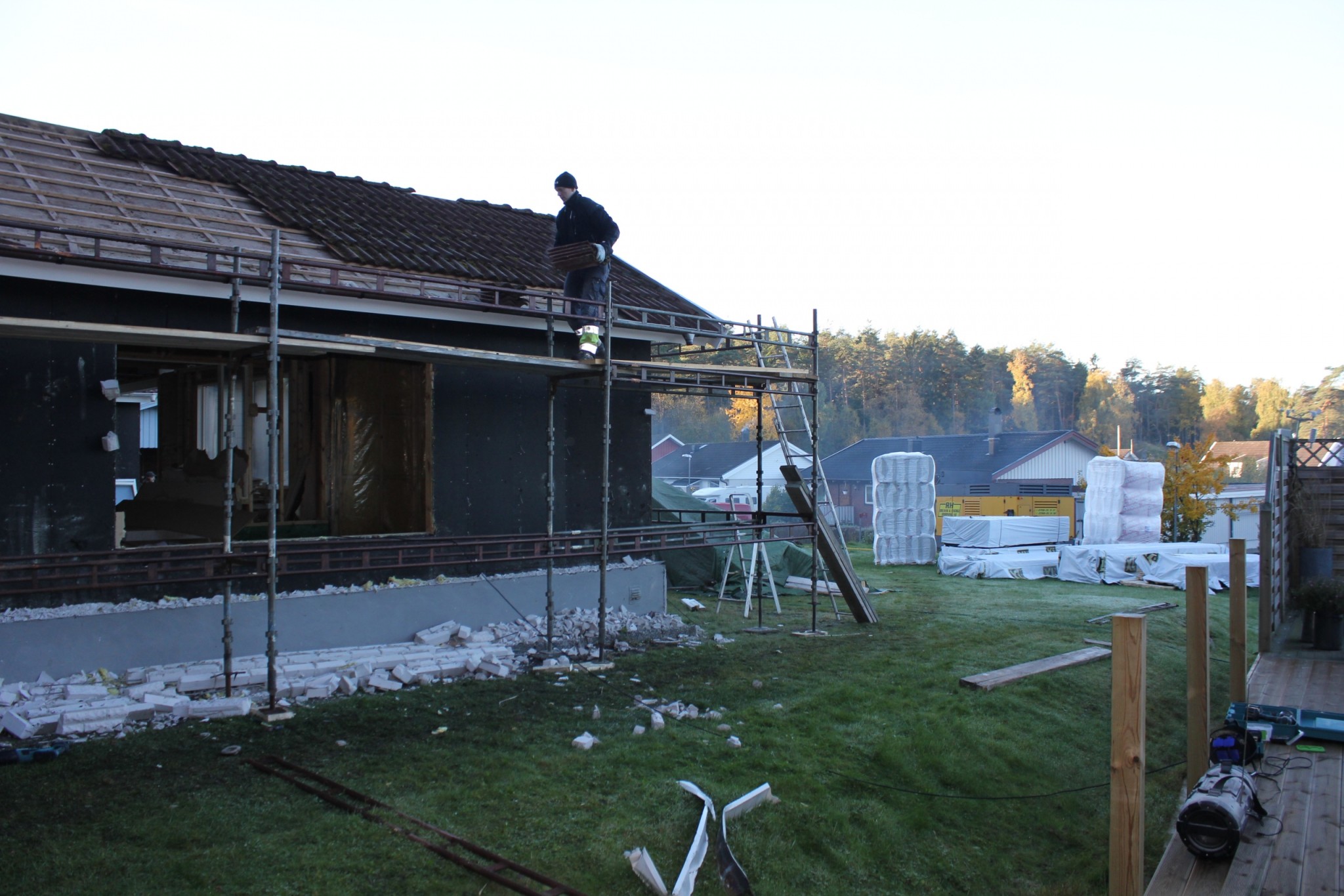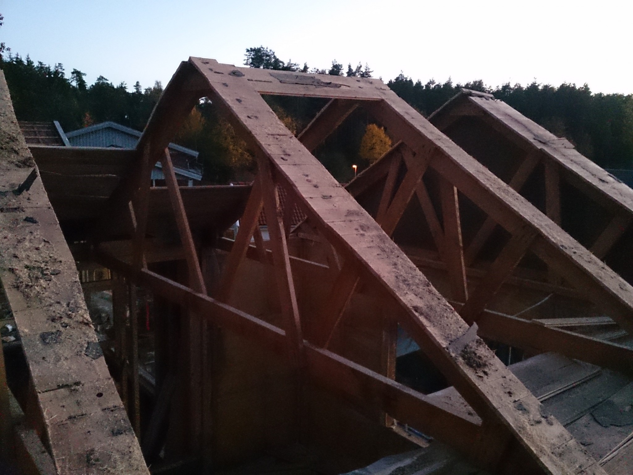 Eftersom taket skulle bytas var dags att börja riva det också, Allt skulle av eftersom vi ville höja takhöjden inne så nya takstolar ble
